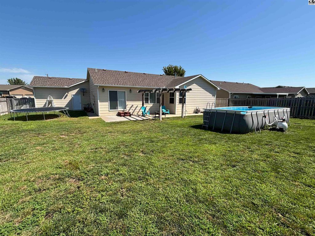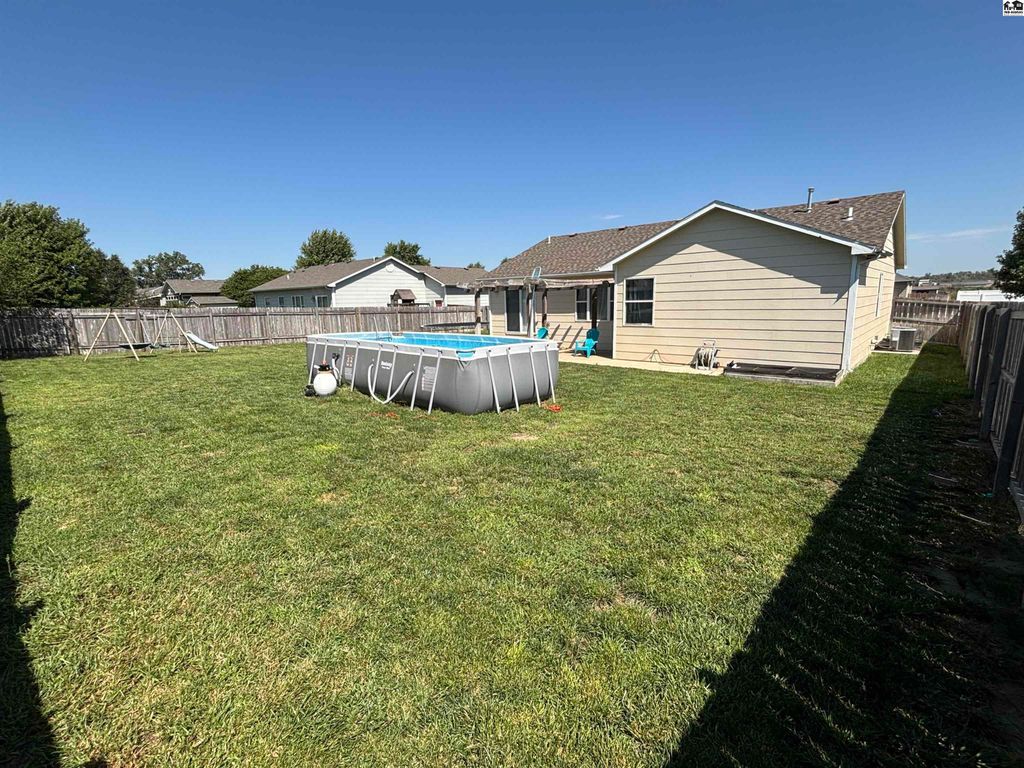 Need lots of rooms and plenty of garage space too? Look no further than this beautiful move in ready home located in the Buhler school district in Northeast Hutchinson. Count them, yes, 6 bedrooms providing lots of options for a big family. There are 4 bedrooms and 2 bathrooms on the main floor and an additional 2 bedrooms and one bathroom in a fully finished basement. Relax in the basement family room and immerse yourself with the entertainment system that is built into the walls and ceiling. The neighborhood is very peaceful and quiet with only very light local traffic. The attached 3 car garage provides ample space for multiple vehicles, motorcycles or toys. Outside features include a large privacy fenced in back yard with an above ground chlorine pool, swing set and trampoline remaining with the home. There’s a well for the irrigation system that covers the front & back yards. Kitchen appliances will remain and are all in working condition but not warranted. All TV mounts will remain and the TVs are negotiable. Homes with these features don’t come available very often, schedule your showing soon!