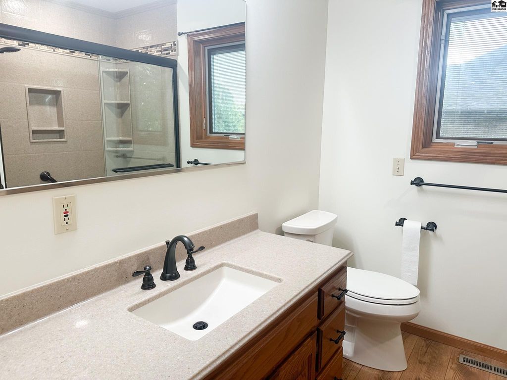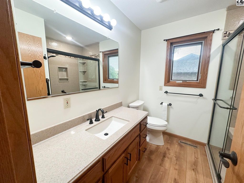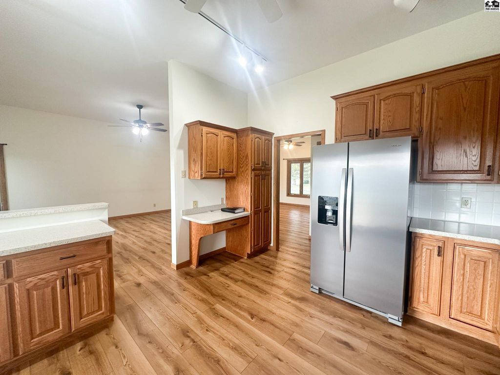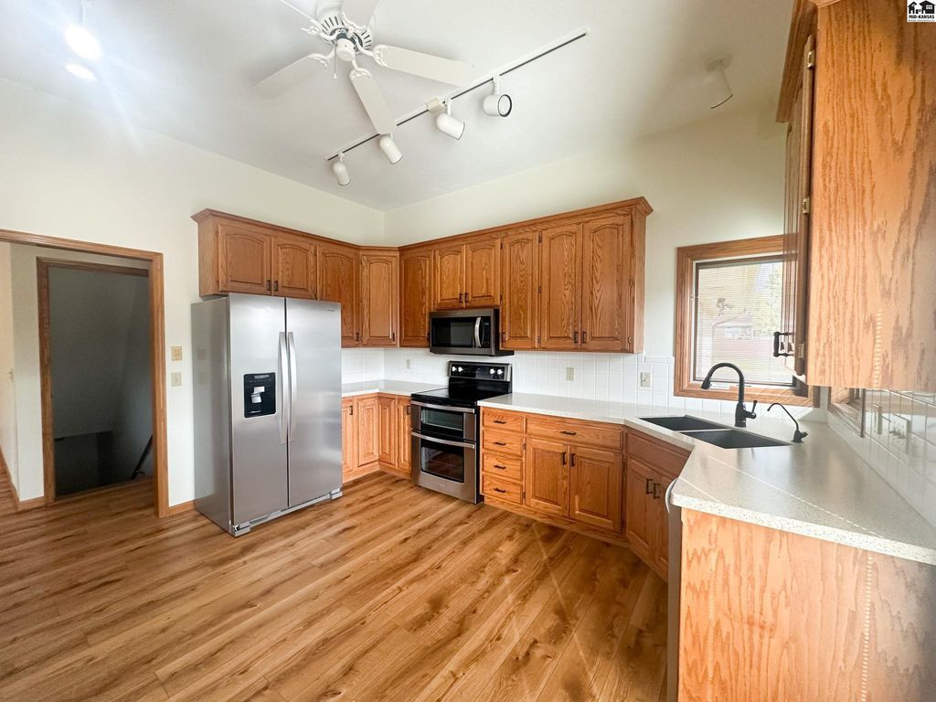 Major remodel spanning from 2021- 2024 in this Custom home with 10′ ceilings! Main floor offers spacious & open living room, with wood burning fireplace, formal dining room & open kitchen, with lots of beautiful cabinetry, solid surface counters, new appliances 2022 and sliding door for access to deck and back yard. Split bedroom plan offers master suite on one end of home & two bedrooms & bath on the opposite end. Master bdrm offers walk in closet & additional bedrooms offer nice closet space as well. Both main floor bathrooms have been completely remodeled with onyx sinks & walk in showers. Main floor laundry is adjacent to garage & offers nice cabinetry, new onyx counter & stainless sink. Basement offers very spacious family room with egress window, rec room that includes a pool table with ping pong table top plus accessories, Two additional bedrooms each with egress windows & nice closet space. Full bath adjacent with walk in shower. There is a bonus room that offers lots of built in cabinetry and counter space, great for office or craft room. Furnace room houses the HVAC system, water heater, & water softener. An additional storage room offers wall to ceiling shelves for more storage space. Additional amenities include: 2 car att garage, finished with access to attic storage space, Storage building, Generac generator, water well, & sprinkler system. Complete list of improvements available.. New roof, gutters, gutter guards, NEW Pella windows, egress window covers etc.