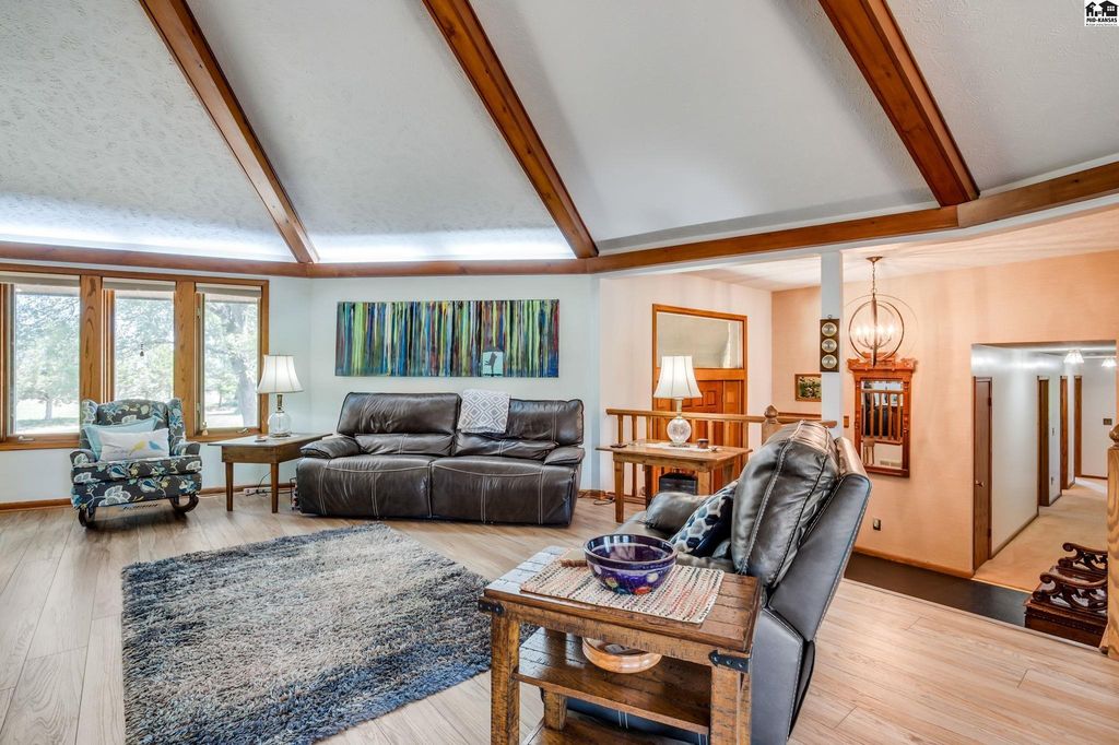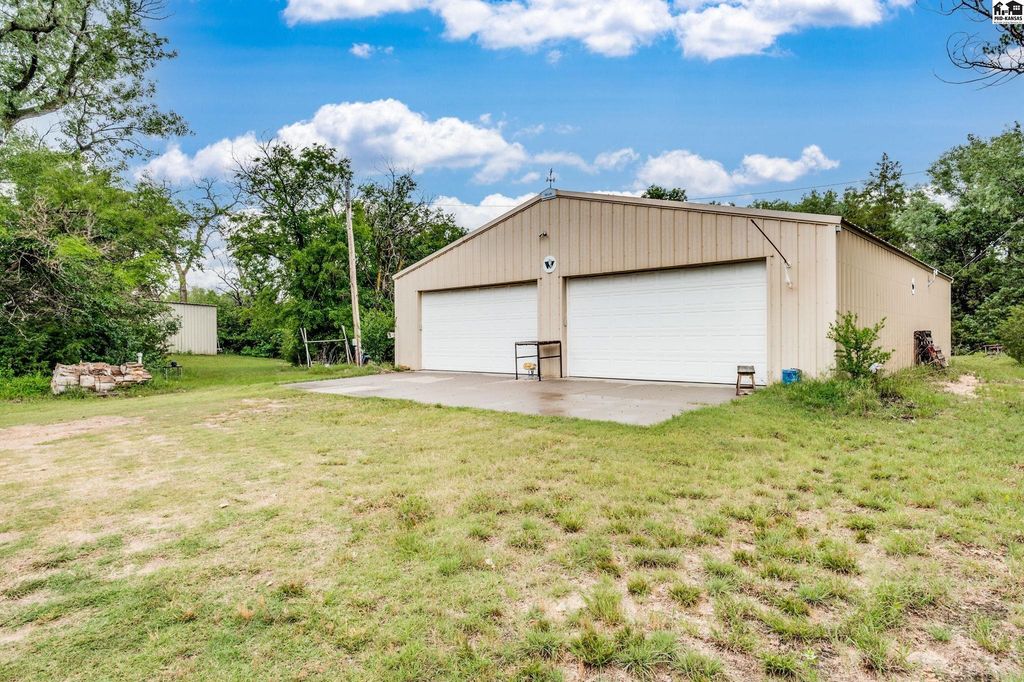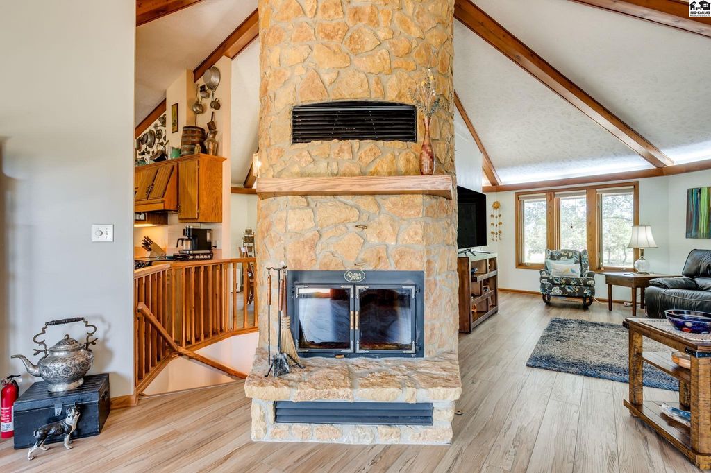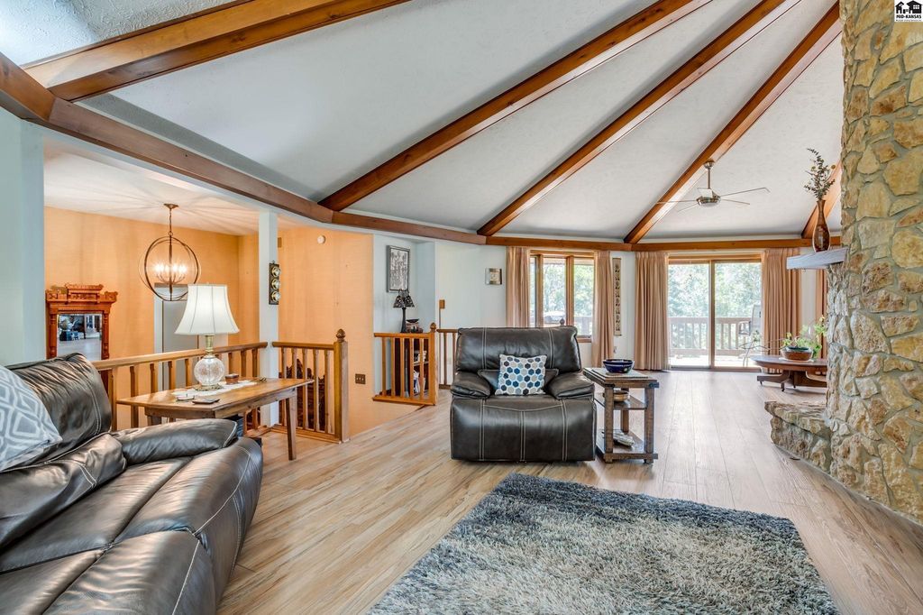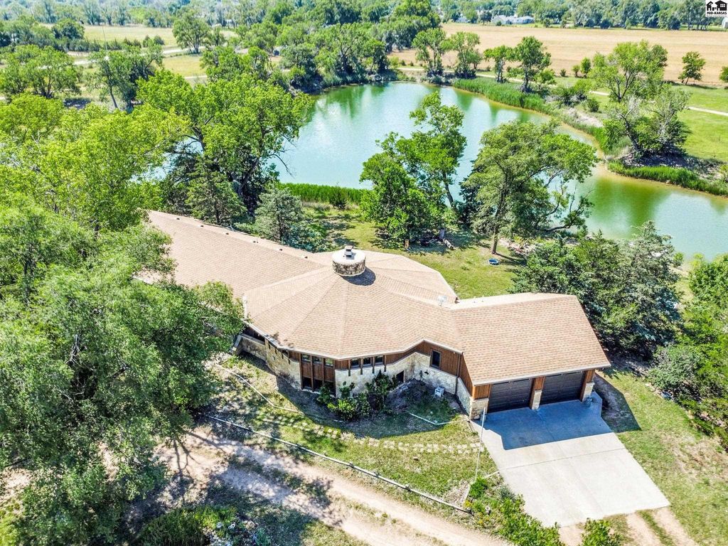 Twenty four acres with beautiful, unique home and large pond. Three bedrooms and 2 baths on main level. Wood burning fireplace with gas starter. Fourth bedroom and bath in walk out basement. Gorgeous views on the water from the multiple decks. Separate utility room on the main level. Property also has 48×42 metal building, a 40×34 metal building and two sheds. Three wells, one for irrigation, one for house and one for shop. Roof was new summer of 2021. Home has solar panels.