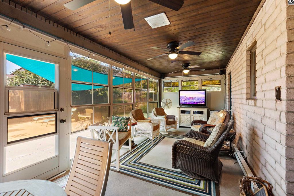 From the circle drive to the courtyard, the foyer welcomes with a view to the living room, a stunning brick fireplace and the saltwater inground pool and patio. This three bedroom three bathroom home feels like a resort vacation. Enjoy an elegant Bartel custom kitchen, formal dining, three season sunroom, pantry and mudroom. The kitchen boasts a large quartz island with center cooktop for great conversations or casual dining, all complemented by a full stainless steel appliance package (Sub-Zero fridge, dual ovens), quartz countertops, tiled floor, The formal dining room sports cork flooring and a view of the pool. The spacious living room is wrapped in a custom brick wall, enhanced by the woodburning fireplace, and views of the pool. The primary suite experience includes oak floors, a nice sized closet, walk-in shower, radiant heat in the bath floor and patio doors to the pool. Two more bedrooms served by a hallway bath are spacious, all closets feature custom shelving. Appreciate quartz and onyx treatments in all the bathrooms. Outside, the saltwater pool, a steam sauna and secluded smokeless firepit convo area delight. Dual pane insulated windows, smart thermostat, all electric with air to air heat pump, updated custom lighting throughout, UGS and an oversize two car garage all for the discerning new owner. The partial basement has a small room for office, exercise or crafts and a mechanical room. Meticulously maintained. Come see and fall in love.