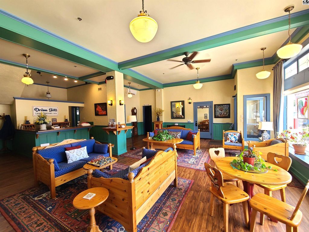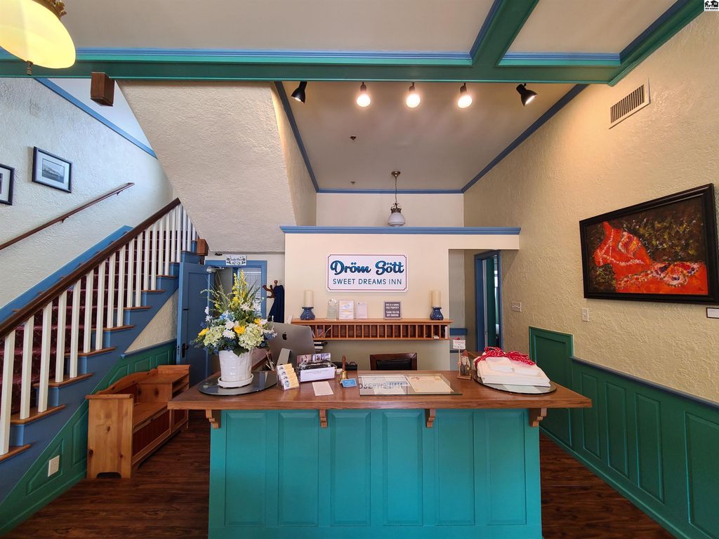 Own a piece of historic Lindsborg! The Drom Sott is a special piece of real estate located in the heart of downtown Lindsborg. Completely remodeled in 2018, the list of improvements is lengthy and impressive. VIP suite with a small kitchen and sitting area. Honeymoon suite for those special occasions. 18 guest rooms with brand new bathrooms, mattresses, linens and custom window coverings. Each room features a brand-new split unit for comfort control. Generous lobby space perfect for visiting after a shopping day in Lindsborg. Industrial kitchen with serving area and a large breakfast room. Visitors enjoy shopping in the gift shop and a cup of coffee in front of the fireplace. The basement has been remodeled also to have a dual role as wine cellar and storm shelter. New plumbing, electrical, paint, flooring – beautifully done from top to bottom!
