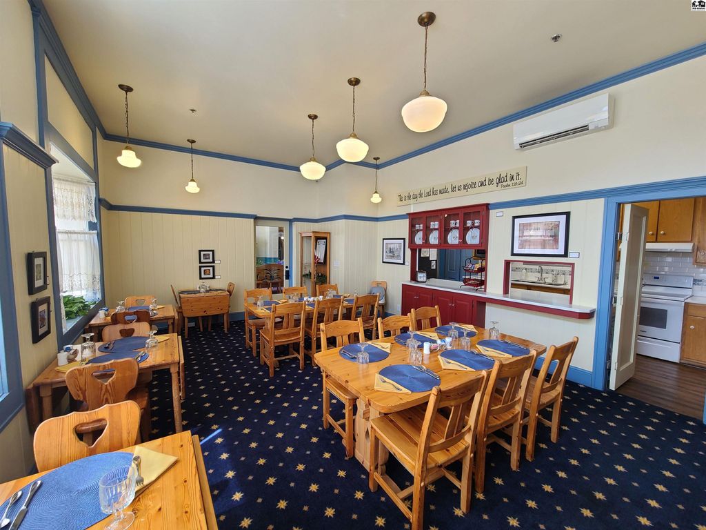 Own a piece of historic Lindsborg! The Drom Sott is a special piece of real estate located in the heart of downtown Lindsborg. Completely remodeled in 2018, the list of improvements is lengthy and impressive. VIP suite with a small kitchen and sitting area. Honeymoon suite for those special occasions. 18 guest rooms with brand new bathrooms, mattresses, linens and custom window coverings. Each room features a brand-new split unit for comfort control. Generous lobby space perfect for visiting after a shopping day in Lindsborg. Industrial kitchen with serving area and a large breakfast room. Visitors enjoy shopping in the gift shop and a cup of coffee in front of the fireplace. The basement has been remodeled also to have a dual role as wine cellar and storm shelter. New plumbing, electrical, paint, flooring – beautifully done from top to bottom!