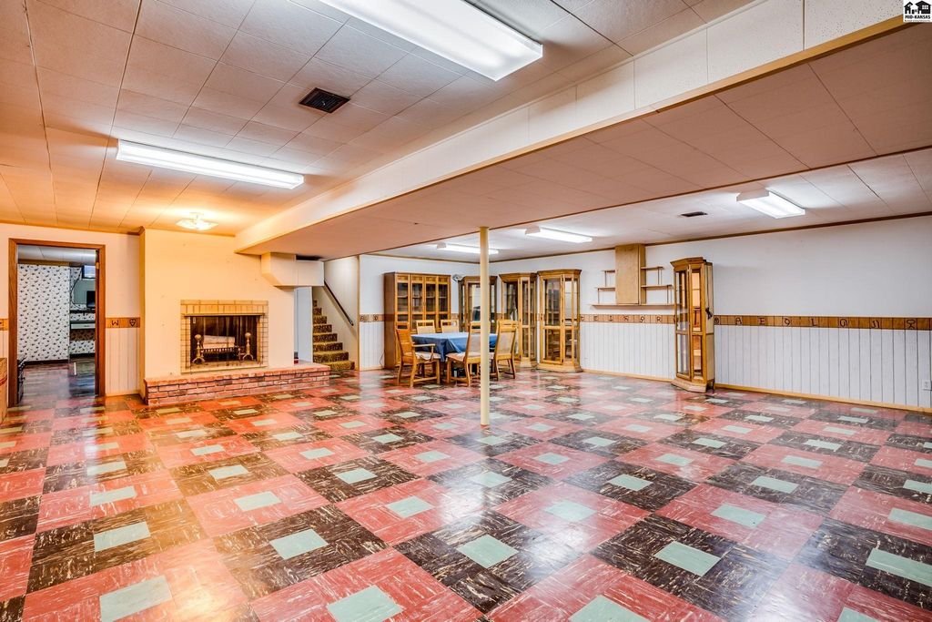 Mid-Century charms meets modern comfort. This stunning corner-lot property is truly one of Lyons most impressive homes, offering style, space and versatility at every turn. Step inside the grand formal living room featuring a striking stone fireplace with an oversized hearth, perfect for cozy gatherings. The open mid-century- style dinging room and kitchen area flows seamlessly to a bright sunporch, creating an inviting space for both everyday living and entertaining. The main floor boasts two spacious bedrooms, two full bathrooms and a convenient laundry room- all on one level for easy living. Downstairs, you’ll find a second large living area with its own fireplace, a full bath, two bonus rooms and a kitchen-ready space- ideal for guests, hobbies or multi-generational living. A large two car garage with a workshop, dual patios for outdoor relaxation, and a prime corner location complete the package. With unique architectural details and an unbeatable layout, this home is a rare Lyons gem you wont want to miss!