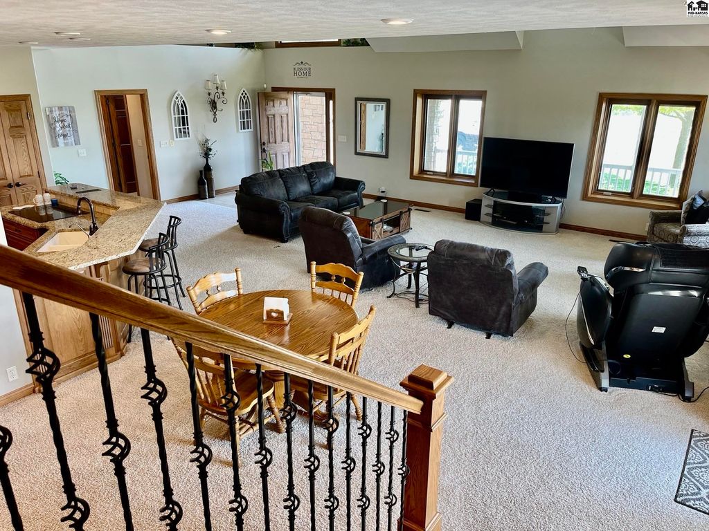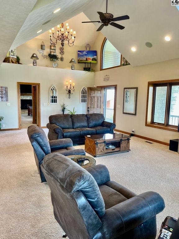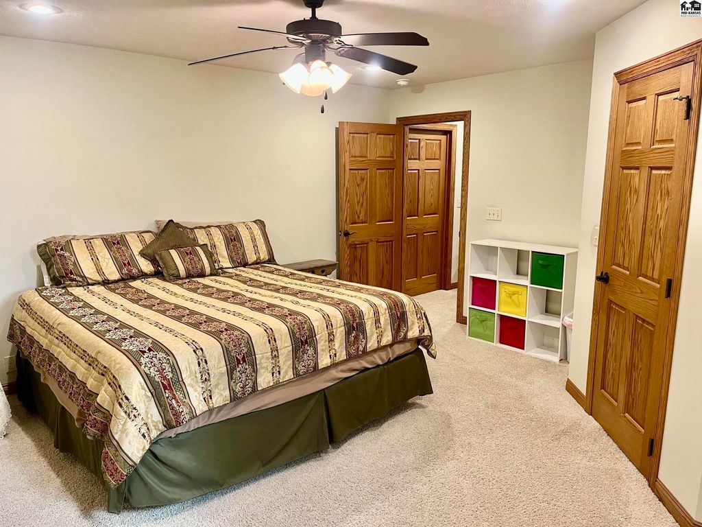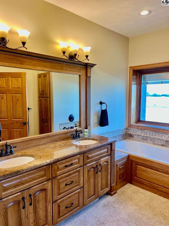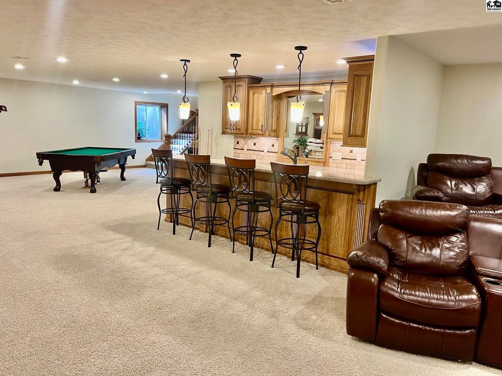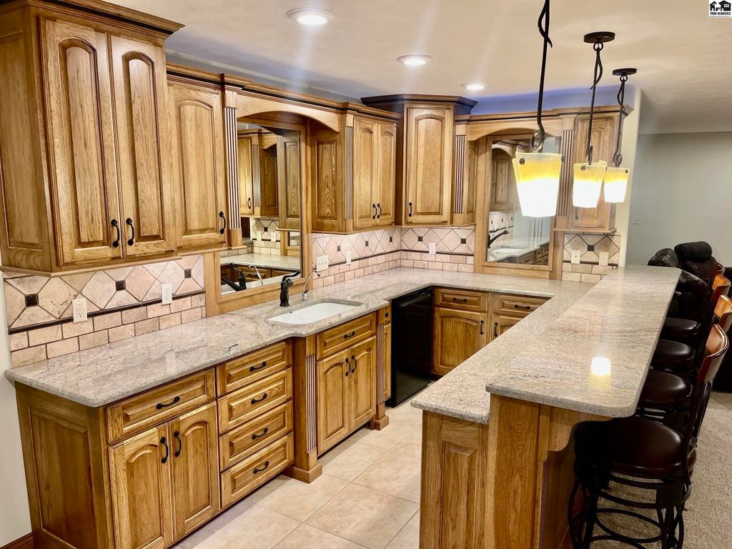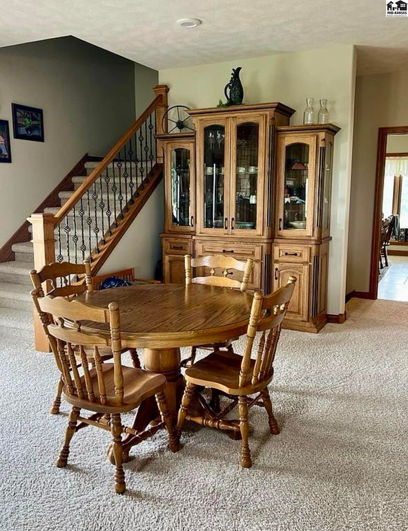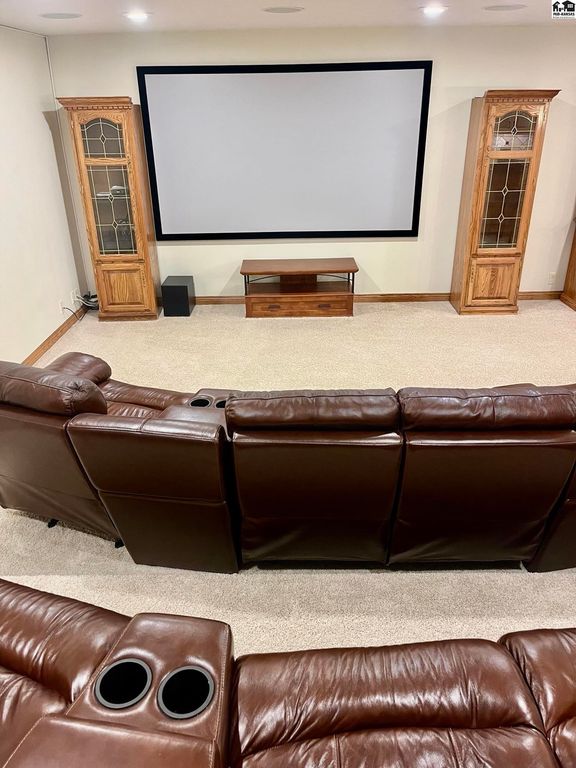 Welcome to this stunning one-owner custom-built home nestled on 38.27 serene acres in Hutchinson. Thoughtfully designed&meticulously maintained, this property offers a rare combination of luxury, functionality & peaceful country living, all just minutes from town. Step inside to discover an abundance of natural light, beautiful Pella windows & incredible handcrafted Bontrager custom, solid wood cabinetry with soft-close drawers & rollout shelving. The spacious kitchen features granite countertops, ample storage, perfect for entertaining. Every bedroom is oversized & features walk-in closets, plus the entire home is wired with surround sound, a Beam central vacuum system & a security system for added peace of mind. Enjoy cozy movie nights in your very own 8-person home theater, with surround sound & projector, or host gatherings in the fully finished basement complete with a wet bar & an additional refrigerator. Additional highlights include a relaxing sunroom that can double as formal dining, private back patio with hot tub, impact-resistant composition roof (only 6 years old), two brand new Lift Master garage door openers, a 65×80 shed, 60×60 metal shed & a charming 30×40 cedar barn. Enjoy the scenic pond, vinyl fencing & wide open spaces, perfect for livestock, recreation, or just enjoying nature. This one-of-a-kind property offers the ultimate blend of custom craftsmanship, modern amenities, and quiet country charm. Come experience the lifestyle you’ve been dreaming of!