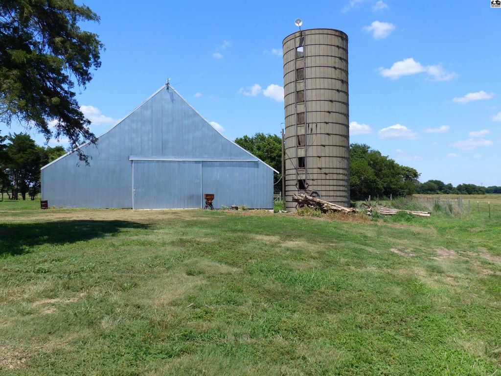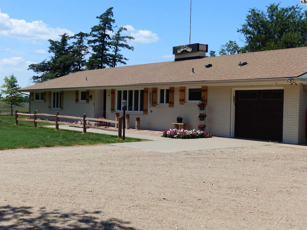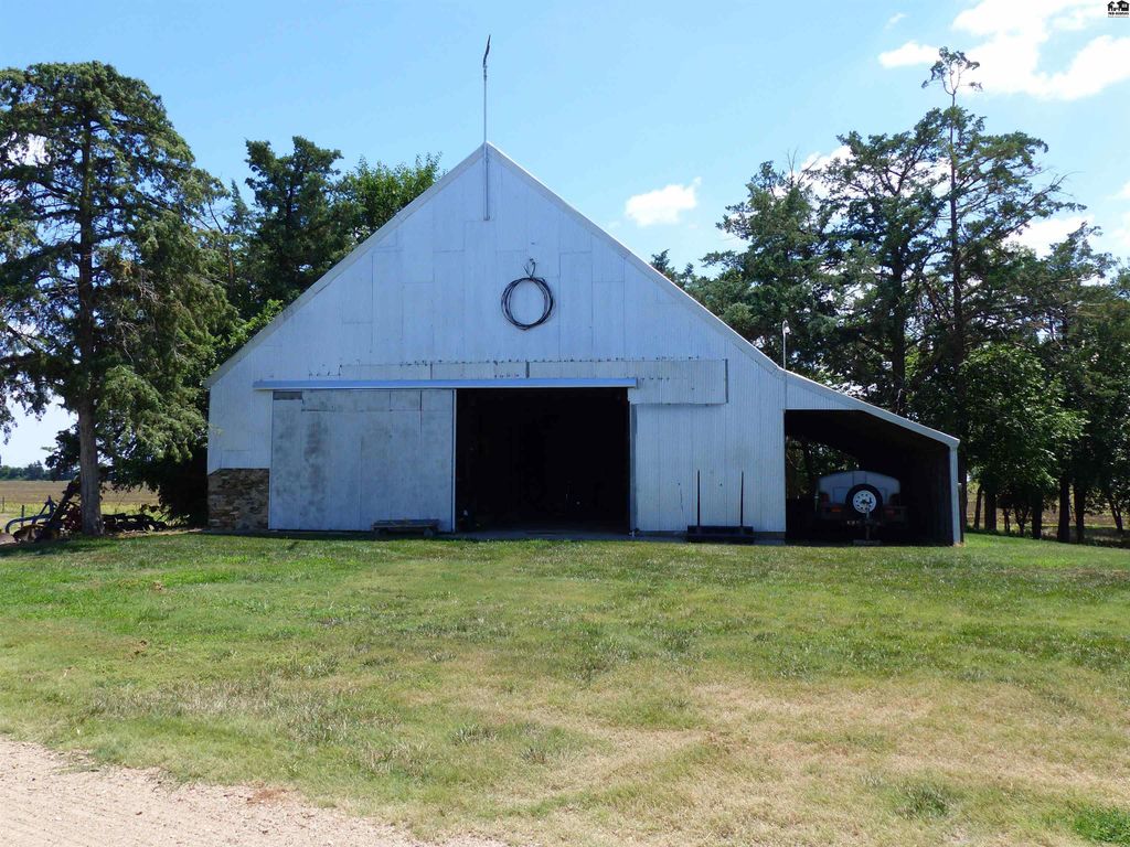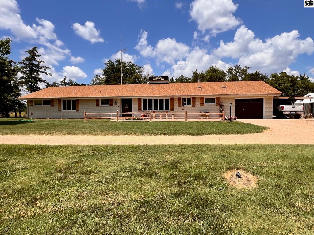 Beautifully updated country home with 15.5 acres located 5 miles West of Lyons one mile off blacktop. This home features 2700 square feet with 5 bedrooms and two bathrooms. Beautiful back yard with pool. Has privacy fence and grass area for children and or pets. This home has new kitchen, baths, flooring and carpet in bedrooms. New HVAC with heat pump, blown insulation in attic, new electrical panel, storm shelter and mature fruit trees. Property has and attached garage and carport and a detached two car garage. Three other buildings for storage one that was used as a barn with three stalls, fenced corral and auto waterer. 10 acres of pasture is also completely fence ready for your animals. Perfect hobby farm opportunity or just space for the whole family to enjoy. Owner is a licensed Real Estate Agent in Kansas Sturdi Built Storage shed is not staying with property and also small chandelier in Main bathroom is excluded from the sale as well.