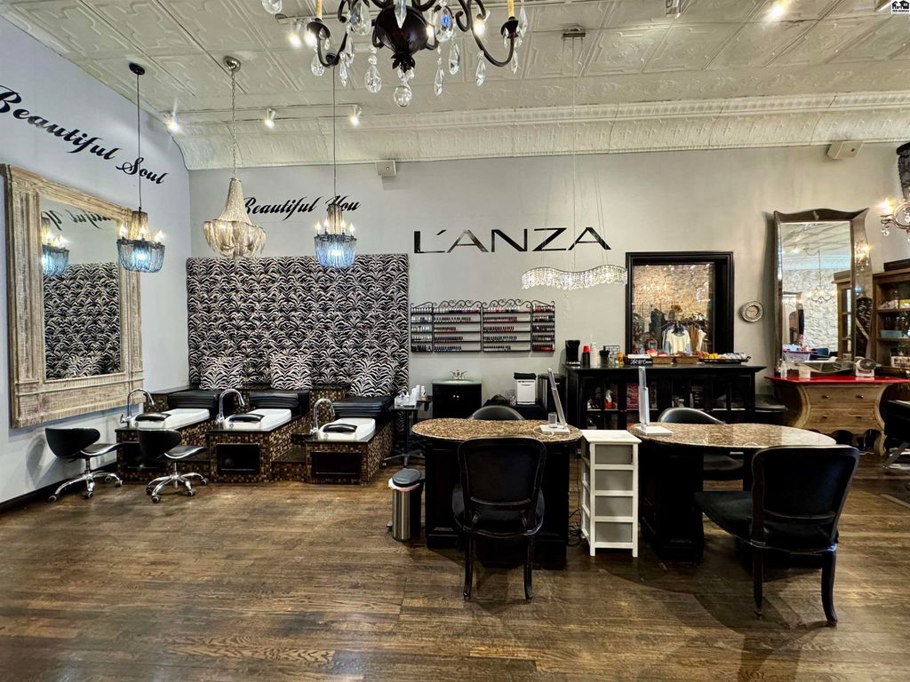 Turn-Key, Fully Operational Salon & Boutique Opportunity in Downtown Hutchinson!! Don’t miss this exceptional opportunity to own a fully renovated, turn-key salon and boutique located in the heart of growing Downtown Hutchinson. This beautifully updated space is thoughtfully designed and ready for immediate operation. The salon area features 3 pedicure stations, 2 nail stations, 3 wash bowls, 3 drying stations, and 10 hair styling stations, along with a welcoming reception and customer waiting area. Enhancing the service offerings is a dedicated spa area with 6 private rooms and a spray tan booth area, ideal for expanding revenue streams. The retail/boutique space includes two fitting rooms, a cash register area, and a large storage room, providing ample space for merchandising and inventory. Recently renovated and move-in ready, this property offers an outstanding opportunity for salon owners, investors, or entrepreneurs looking to establish or expand their business in a vibrant and growing downtown location. This is truly a turn-key opportunity you don’t want to miss.