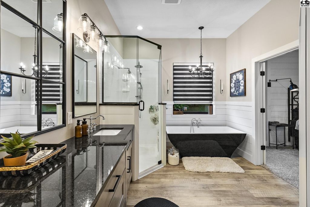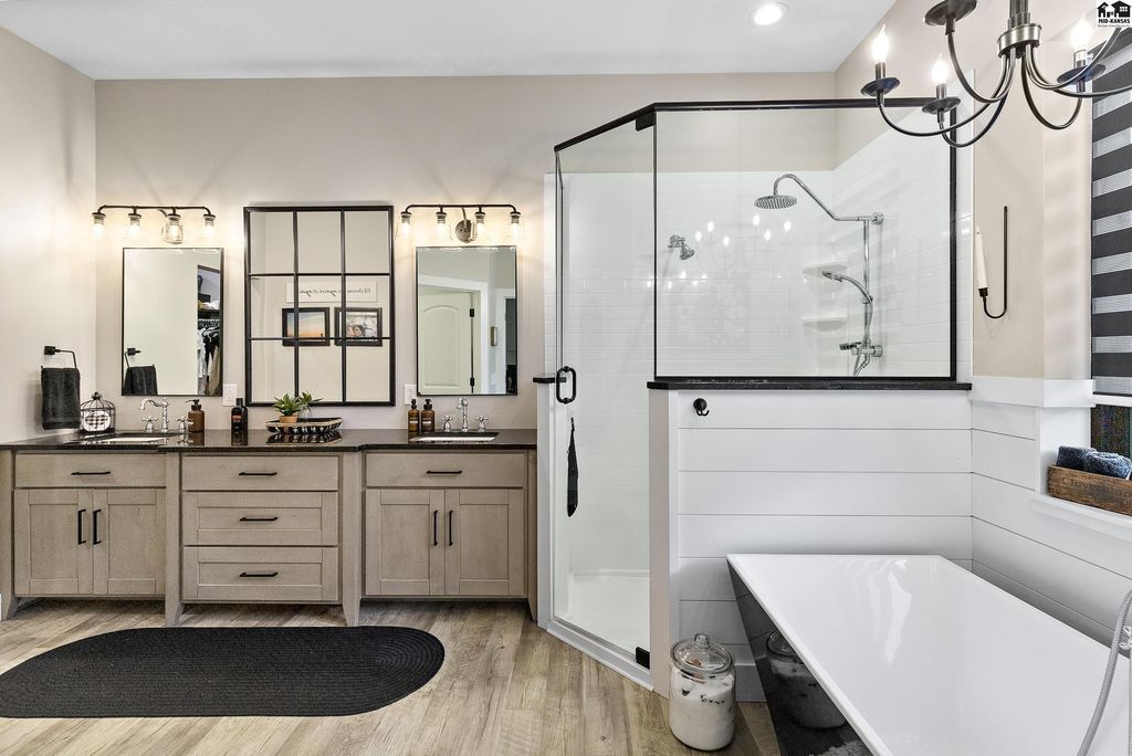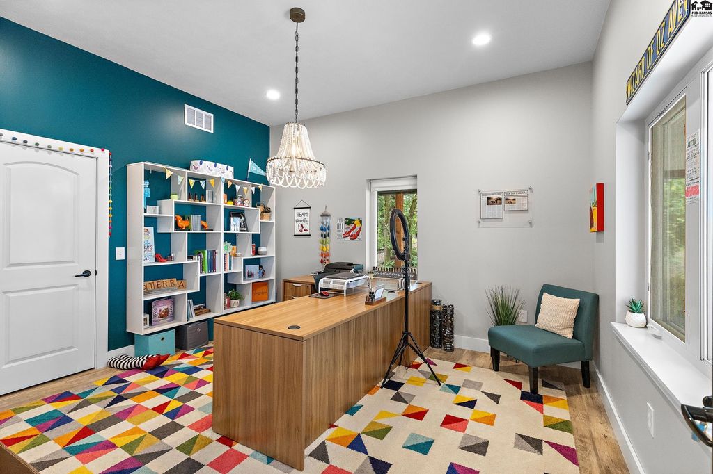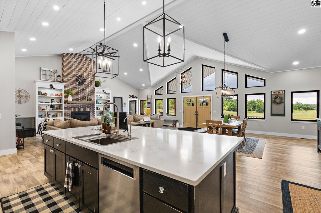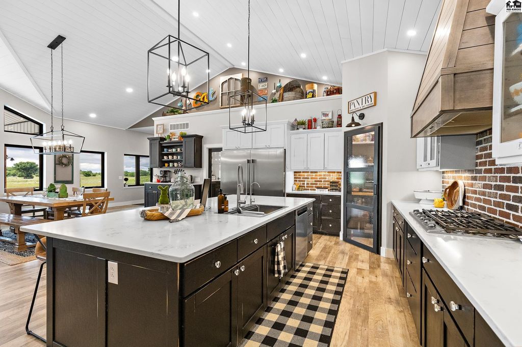 Over 11,000 sq ft under ONE ROOF!!?? Average electric bill around $250/mo – shut the front door!! Chemical cleaners never used in the house – amazing!! Built just 5 years ago by Yoder Engineered Structures, this property is truly your own piece of paradise. Tucked away on an almost hidden driveway off of paved frontage, enjoy the gentle rolling hills and mature trees on 40 acres with a pond. Great place to raise livestock in the fenced pasture and chickens have their own matching coop and run. Breathtaking views and quiet nights can be spent on the massive wrapping porch. Design and utility was carefully crafted in every space of this home. The vaulted ceilings and sprawling space make this home feel like your own castle! Large quartz kitchen island is an amazing place to cook and entertain. Fun and modern designs that can be taliored to almost any style make this ideal for many buyers. The basement features tons of space for recreation and a fun kitchenette for big celebrations or grabbing a snack just outside the home theater room. All custom cabinetry day Yoder Cabinets and high end finishes throughout! An oversized mudroom connects to a 60×80 insulated shop. make great storage and never have to step outside during the elements to get to your vehicle. Shop features 2 14′ OH doors and 3 oversized 10′ garage doors with openers. Shop interior is partially metal, fully insulated. 2 RV hookups (inside and out).