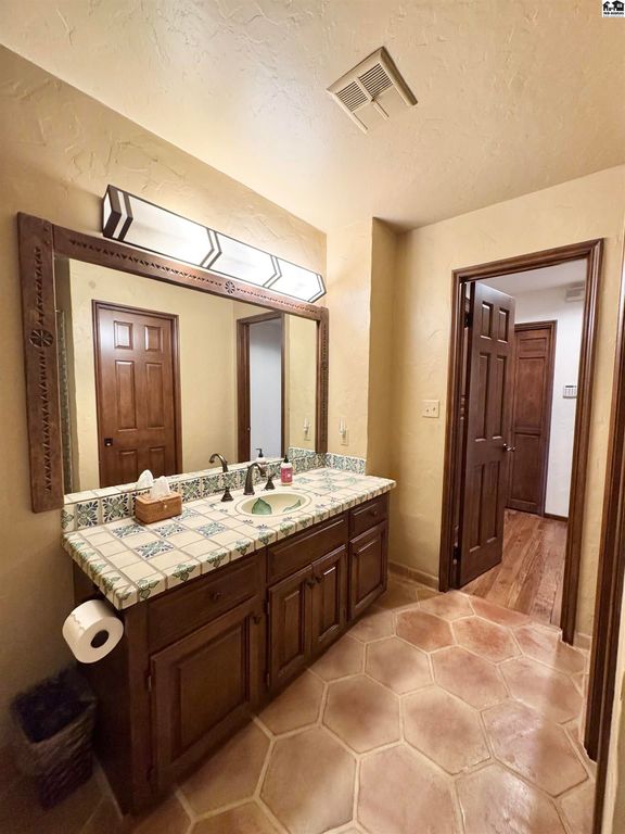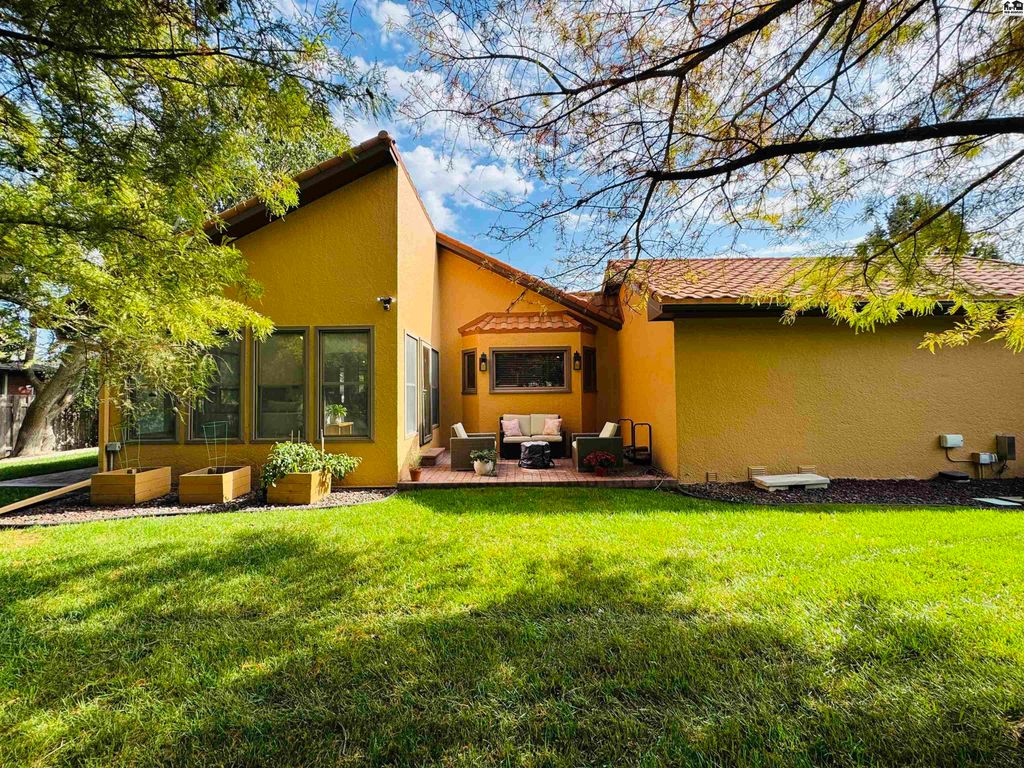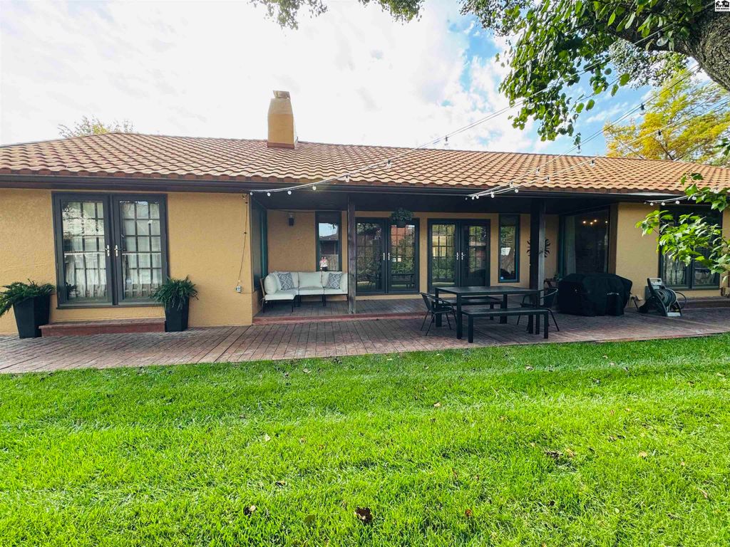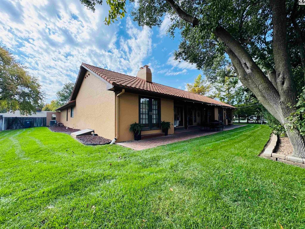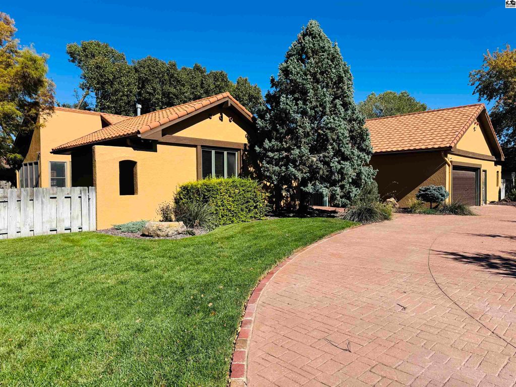 Beautiful Southwestern-style home w/custom craftsmanship & rich artistic details throughout. Private courtyard features fountain imported from Mexico, and front door was hand-carved by nationally recognized artist Mike Livingston. Inside, Saltillo tile and hand-scraped hardwood floors extend throughout the home. Livingston’s work continues with bronze star-trimmed kitchen countertops and handcrafted mirrors in both the guest & primary baths. The formal living room features a European-imported chandelier, a custom mantle, and imported doors that open to a wet bar. French doors from both the living room and formal dining room lead to a private covered patio, creating seamless indoor-outdoor living and entertaining opportunities. The kitchen has center island, double convection ovens, and brand-new refrigerator. All three main floor bedrooms include attached bathrooms. The spacious primary suite includes 2 walk-in closets, built-ins, jetted tub, walk in shower, and dry sana!! A versatile bonus room on the main floor can serve as a sunroom, den, or home office. Basement includes a finished family room and a large unfinished area that offers storage or the potential for future expansion. An egress window is already in place, making it easy to finish the space into an additional bedroom and/or additional living area. Other upgrades include a Class 4 IR metal roof installed in 2022, a new west AC unit installed in 2024, and most windows replaced.