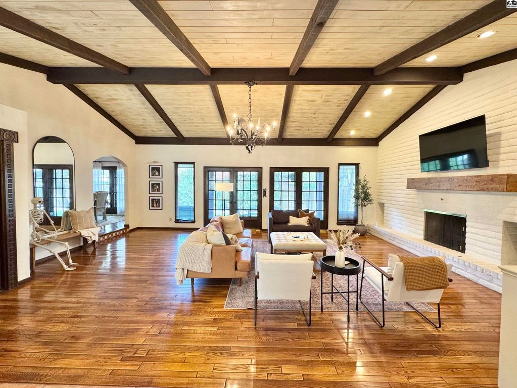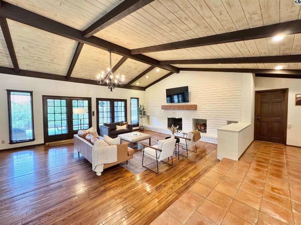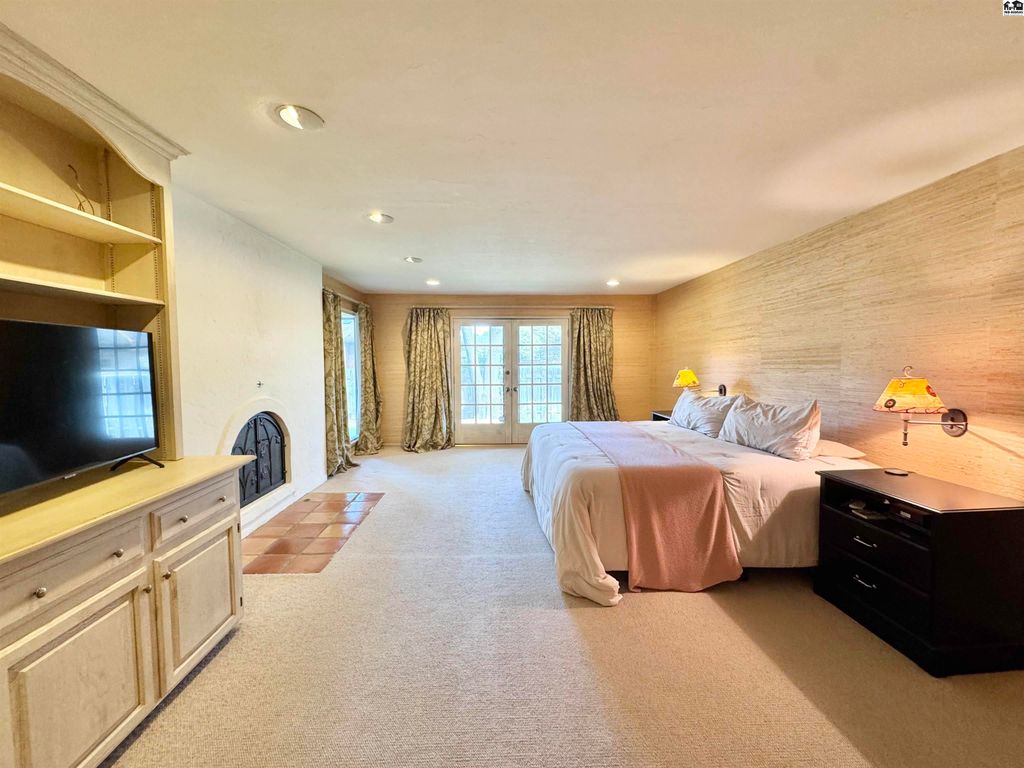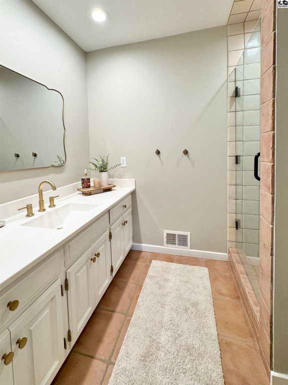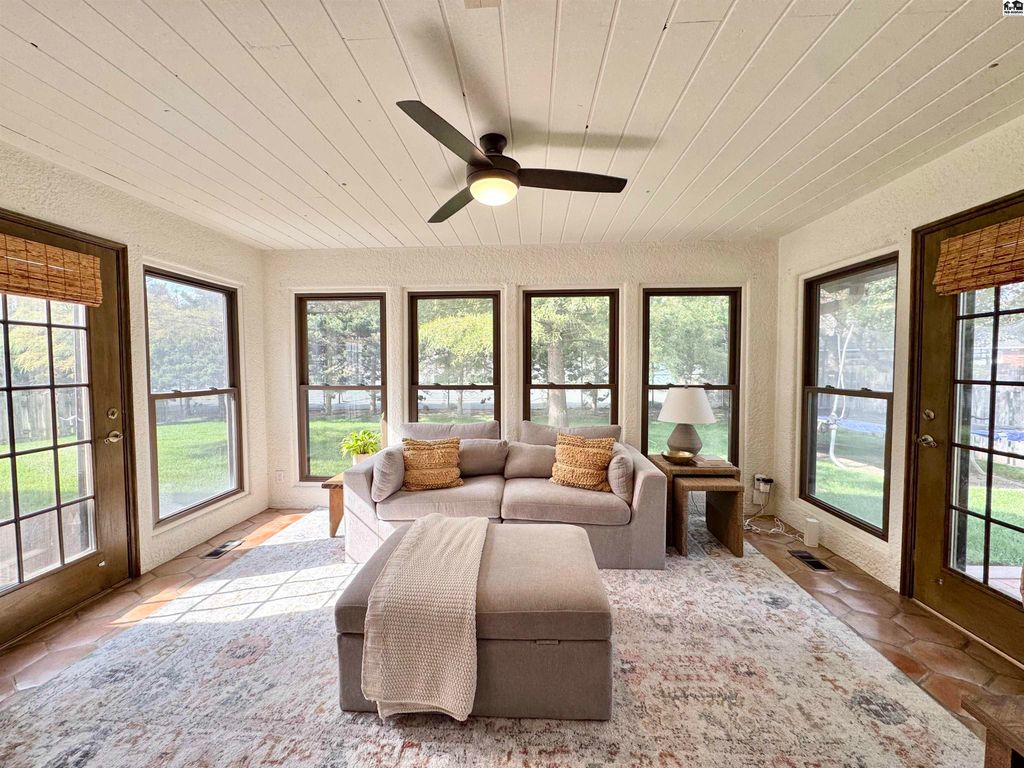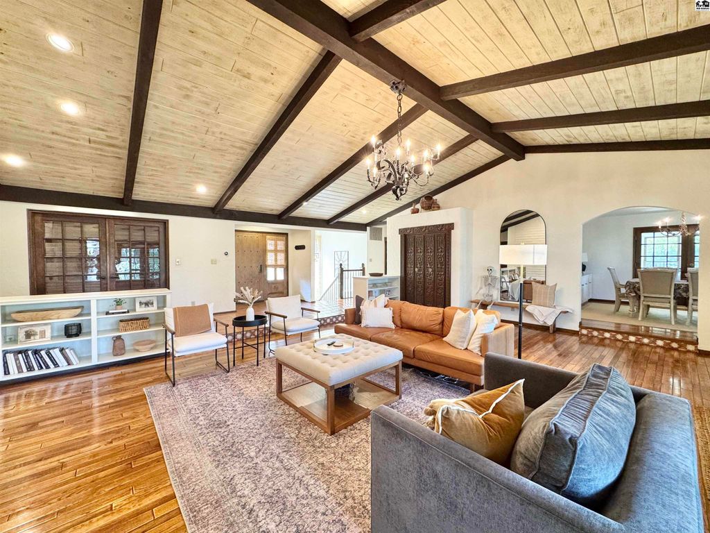 Beautiful Southwestern-style home w/custom craftsmanship & rich artistic details throughout. Private courtyard features fountain imported from Mexico, and front door was hand-carved by nationally recognized artist Mike Livingston. Inside, Saltillo tile and hand-scraped hardwood floors extend throughout the home. Livingston’s work continues with bronze star-trimmed kitchen countertops and handcrafted mirrors in both the guest & primary baths. The formal living room features a European-imported chandelier, a custom mantle, and imported doors that open to a wet bar. French doors from both the living room and formal dining room lead to a private covered patio, creating seamless indoor-outdoor living and entertaining opportunities. The kitchen has center island, double convection ovens, and brand-new refrigerator. All three main floor bedrooms include attached bathrooms. The spacious primary suite includes 2 walk-in closets, built-ins, jetted tub, walk in shower, and dry sana!! A versatile bonus room on the main floor can serve as a sunroom, den, or home office. Basement includes a finished family room and a large unfinished area that offers storage or the potential for future expansion. An egress window is already in place, making it easy to finish the space into an additional bedroom and/or additional living area. Other upgrades include a Class 4 IR metal roof installed in 2022, a new west AC unit installed in 2024, and most windows replaced.