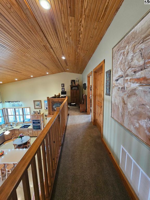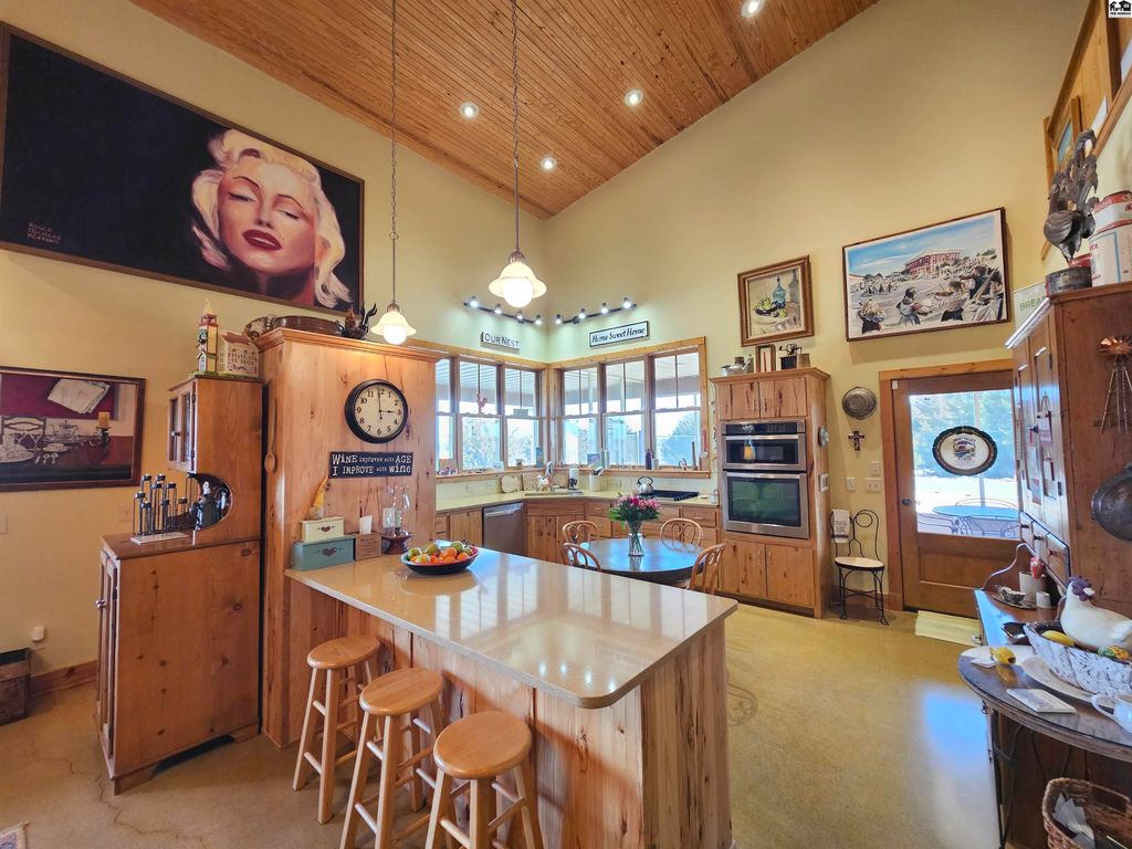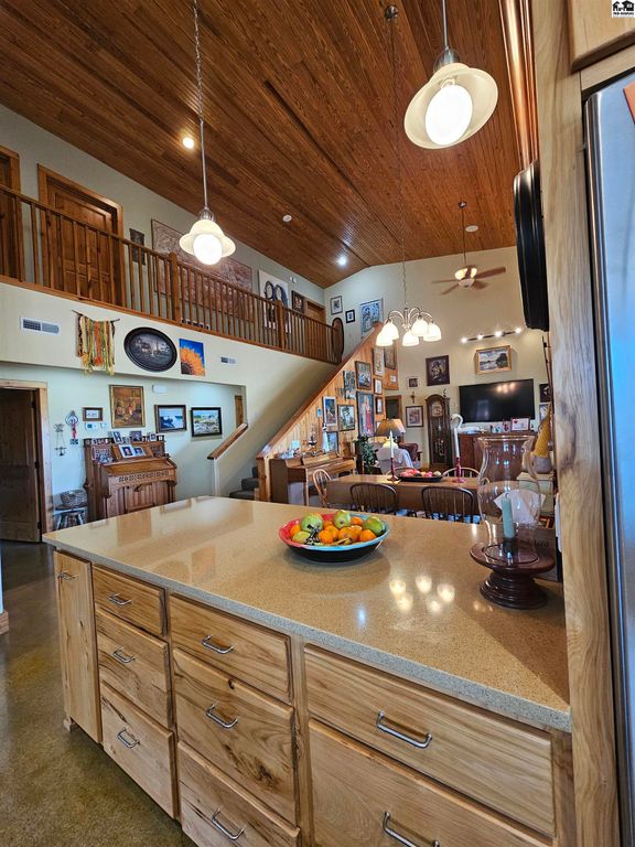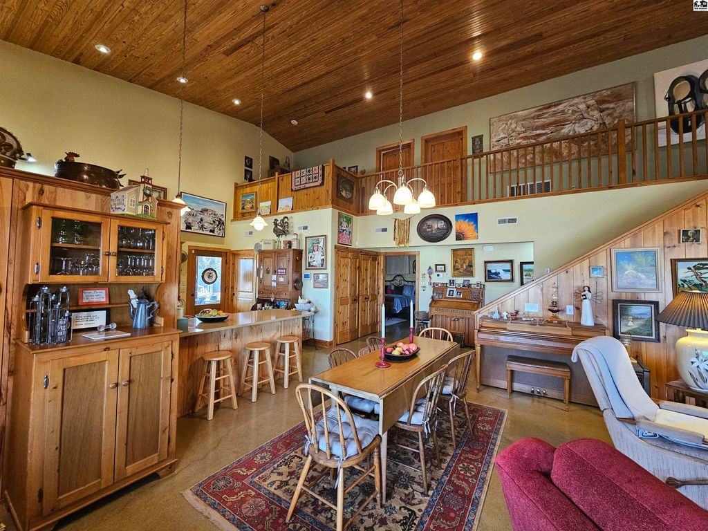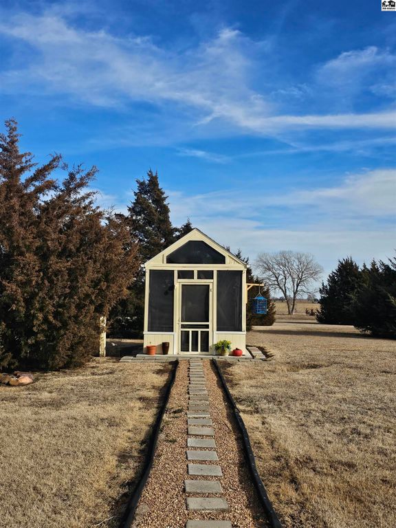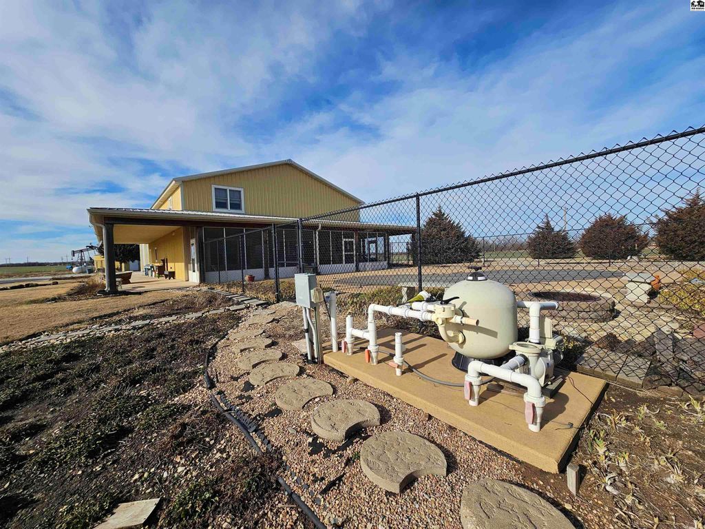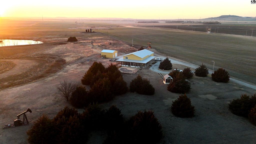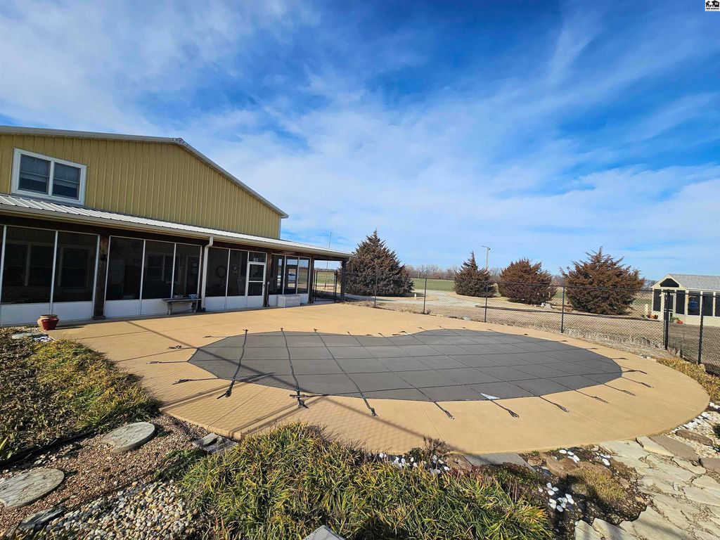 Experience the perfect blend of craftsmanship, comfort, and wide-open Kansas beauty with this custom barndominium-style home on 38.2 scenic acres just one mile from the heart of Lindsborg. Thoughtfully designed with both function and character in mind, this stunning residence features soaring vaulted ceilings accented by rich woodwork and custom hickory cabinetry throughout. Radiant heated floors provide year-round comfort, while a Generac backup generator ensures peace of mind during power outages. The spacious layout offers 3 bedrooms and 4 bathrooms, plus a dedicated office and den/bar that could easily be converted into additional bedrooms. Upstairs, you’ll find a charming loft area complete with two bedrooms and a full bath, ideal for guests and family. Outdoor living is just as impressive. Enjoy stunning sunrises and sunsets along with sweeping scenic vistas including Coronado Heights from your covered patios or just relax in the in ground pool. A stocked pond with dock creates another private retreat. Oversized attached garage with loft storage and abundant shelving is a dream. 30×60 shop with concrete floors and electicity. Additional outbuilding for storage and the most charming garden shed. Whether you’re seeking a peaceful rural residence, hobby farm potential, or a property that blends lifestyle and practicality, this one-of-a-kind acreage offers space, versatility, and unmatched Smoky Valley views, all within minutes of one of Kansas’ most desirable town