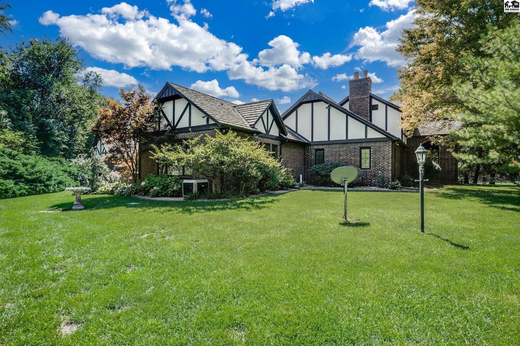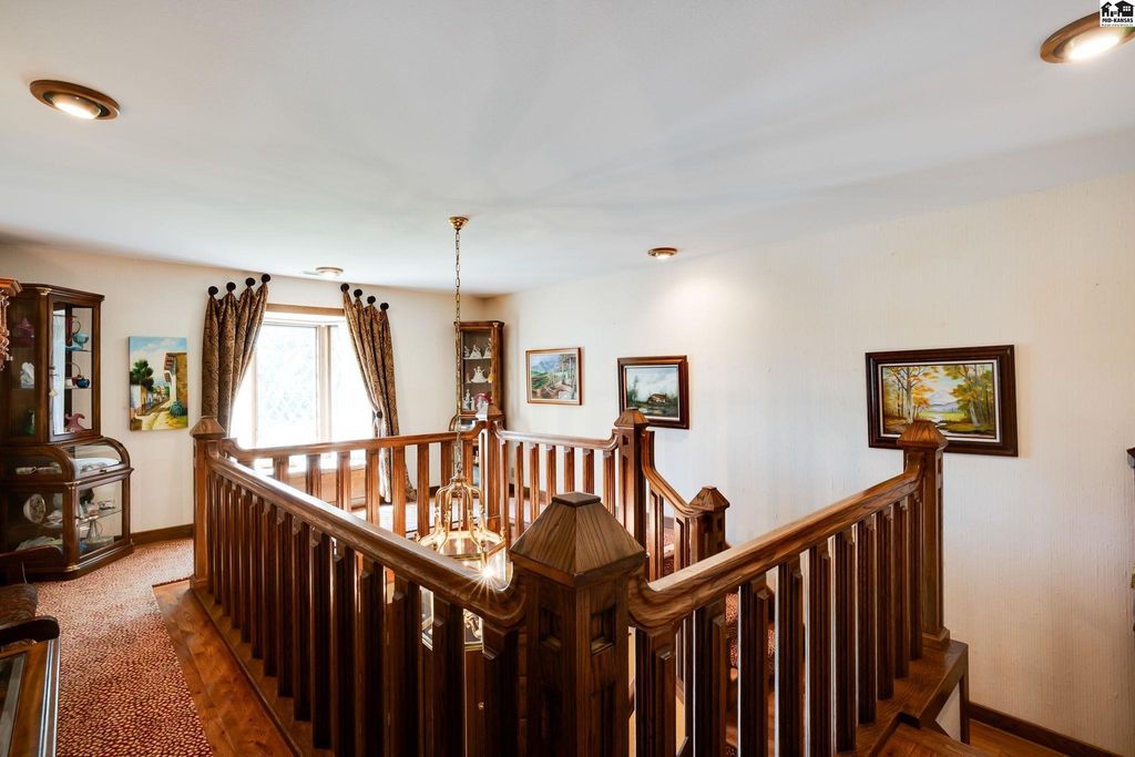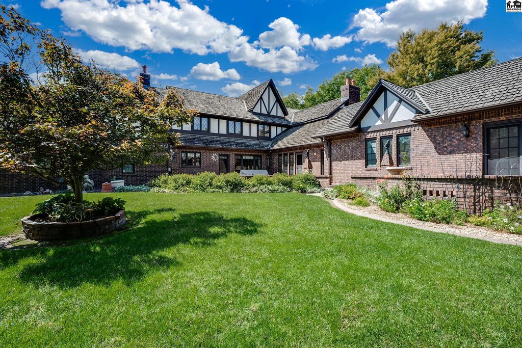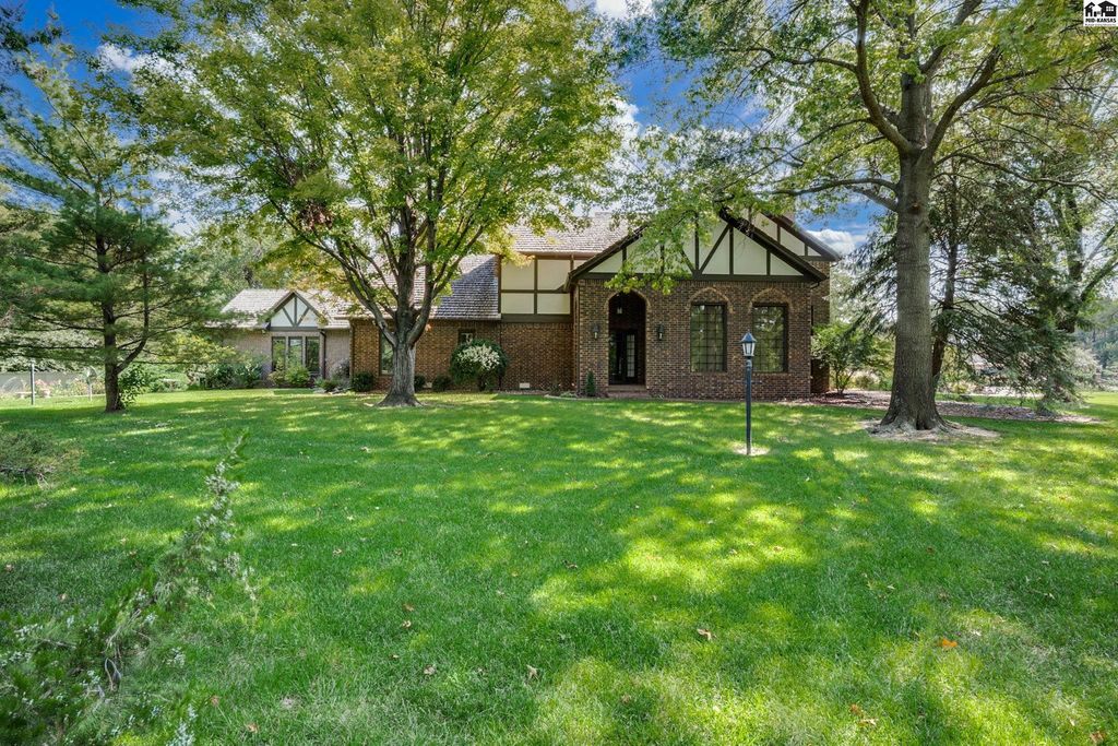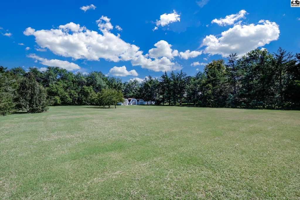 SMALL TOWN LIVING AT IT’S BEST! CHECK OUT THIS FABULOUS 5 BEDROOM, 4 FULL AND 2 HALF BATH MASTERPIECE BOASTING OVER 5600 SQUARE FEET. This EXTRAORDINARY home is on 1.6 acres with huge brick patio, circle driveway and so much more. High quality workmanship throughout home. DREAM KITCHEN with granite countertops, built ins, sub zero refrigerator, wolf gas cook top. double ovens and large walk in pantry. Kitchen opens up to large living area perfect for all types of entertaining. Newer windows include beveled and leaded glass upgrades. Second huge large living area with soaring ceilings, fireplace and built in bar. Front formal living area and also separate private office with access to covered patio. Electric blinds and built in bookcases. Main floor primary suite has dual bathrooms and an unbelievable closet/dressing area. Marble floors, large tiled walk in shower, sitting area and a BONUS room off the back used as exercise room. What more could you want? Upstairs has ultra cool landing to display your pictures/art work and 4 LARGE BEDROOMS w/ large closets & TWO FULL BATHS that separate each room. Bonus storage room. Great design for family and guests! Main floor laundry with storage and full bath. High end security system installed. Attached oversized 2 car garage w/ epoxy flooring & summer kitchen for canning. Detached single garage with storage in attic. Beautiful landscaping, stunning brick patio, 3 storage sheds. Hunt nearby at Quivira State Park.