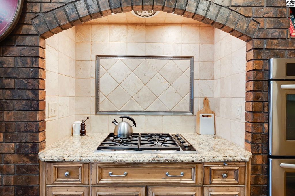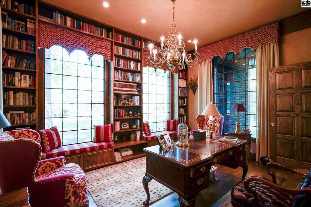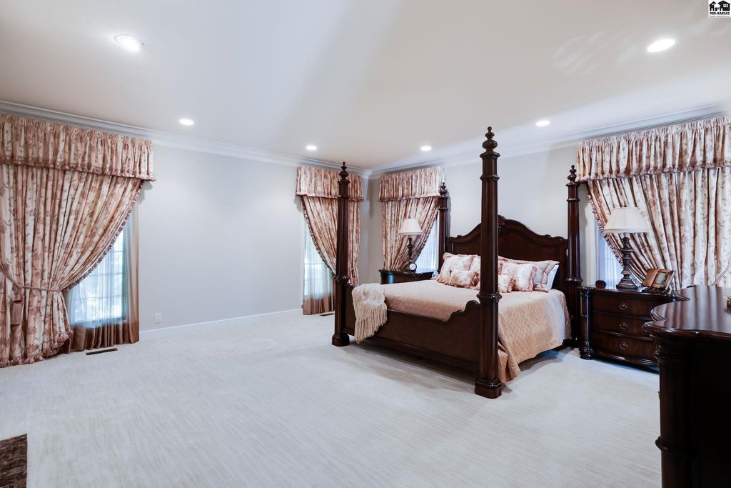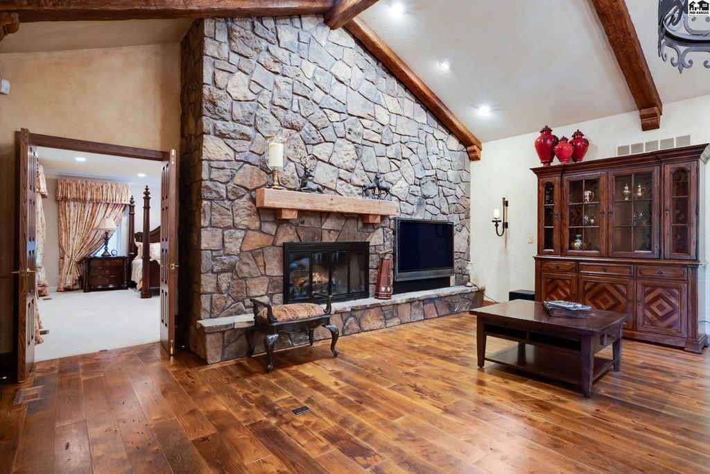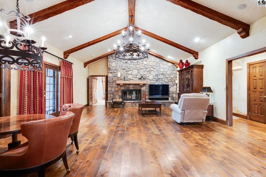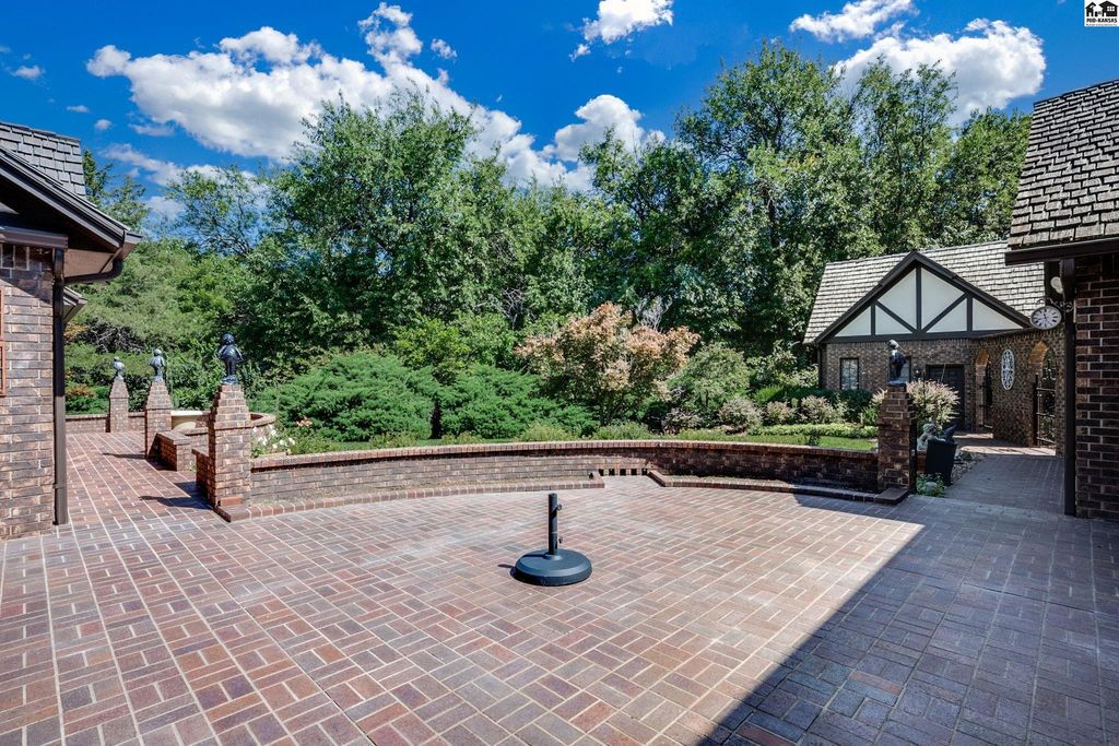 SMALL TOWN LIVING AT IT’S BEST! CHECK OUT THIS FABULOUS 5 BEDROOM, 4 FULL AND 2 HALF BATH MASTERPIECE BOASTING OVER 5600 SQUARE FEET. This EXTRAORDINARY home is on 1.6 acres with huge brick patio, circle driveway and so much more. High quality workmanship throughout home. DREAM KITCHEN with granite countertops, built ins, sub zero refrigerator, wolf gas cook top. double ovens and large walk in pantry. Kitchen opens up to large living area perfect for all types of entertaining. Newer windows include beveled and leaded glass upgrades. Second huge large living area with soaring ceilings, fireplace and built in bar. Front formal living area and also separate private office with access to covered patio. Electric blinds and built in bookcases. Main floor primary suite has dual bathrooms and an unbelievable closet/dressing area. Marble floors, large tiled walk in shower, sitting area and a BONUS room off the back used as exercise room. What more could you want? Upstairs has ultra cool landing to display your pictures/art work and 4 LARGE BEDROOMS w/ large closets & TWO FULL BATHS that separate each room. Bonus storage room. Great design for family and guests! Main floor laundry with storage and full bath. High end security system installed. Attached oversized 2 car garage w/ epoxy flooring & summer kitchen for canning. Detached single garage with storage in attic. Beautiful landscaping, stunning brick patio, 3 storage sheds. Hunt nearby at Quivira State Park.