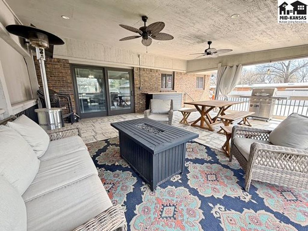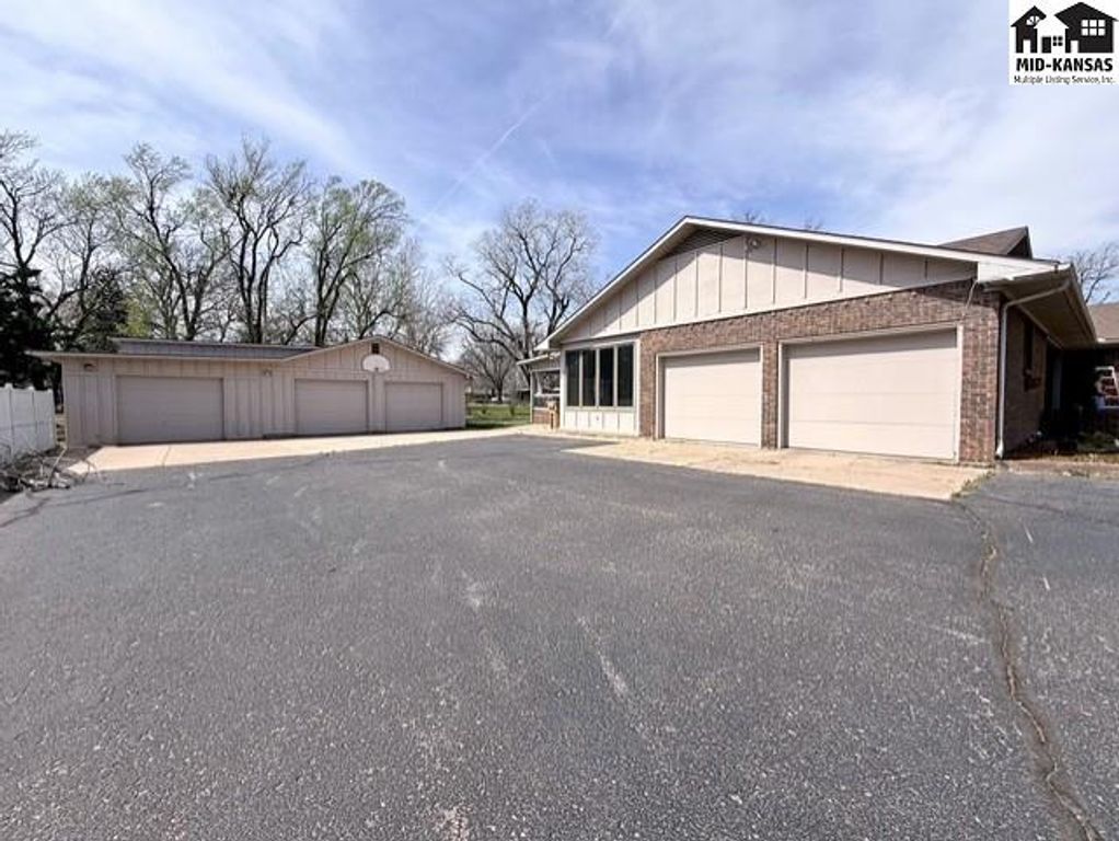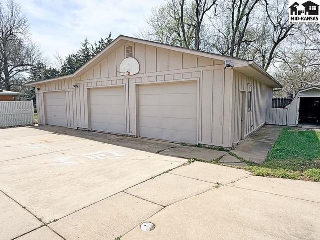 WOW FACTOR ALERT!! Welcome home to this beautifully updated property in the desirable Hillcrest neighborhood—designed with comfort, space, and entertaining in mind! Featuring several updates throughout, this stunning home offers an open-concept layout with an updated kitchen complete with granite countertops, stainless steel appliances, and convenient built-in USB ports for modern living. With 3 spacious bedrooms and 3 bathrooms, there’s room for everyone to spread out and enjoy. The home is truly an entertainer’s dream with a large, covered patio featuring stamped concrete, blackout curtains, and overhead heaters, making it the perfect spot to relax and enjoy all the beautiful Kansas seasons. You’ll also love the sunroom, offering even more space to unwind year-round. And let’s talk garages… Car lovers, hobbyists, or anyone needing extra space will appreciate the 2-car attached garage plus the incredible massive 5-car detached garage/workshop that is both heated and cooled—ideal for projects, storage, or the ultimate workspace. Downstairs, the large basement offers endless possibilities with a spacious rec room, a massive theater room complete with theater seating. As an added bonus, the Hillcrest neighborhood offers pool access with lifeguards through a paid membership, giving you even more to love about this exceptional property. This one checks all the boxes—updated, spacious, and built for entertaining both inside and out!