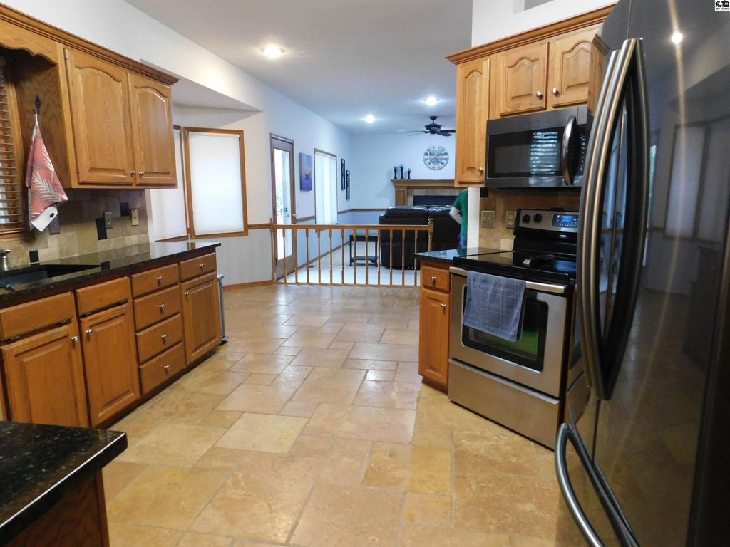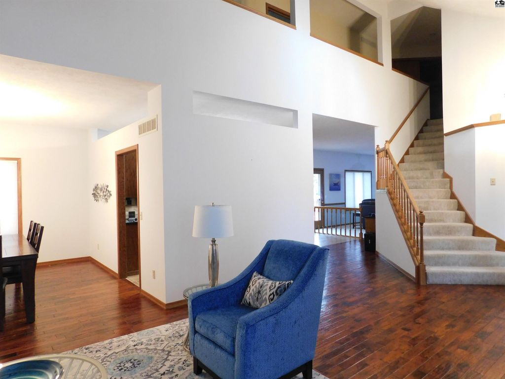 Beautiful Prairie Hills 1&1/2 story home with 5 bedrooms and 3 & 1/2 baths. This home has two main floor living areas, vaulted ceilings, wood floors on main level, back living room has built ins and wood burning fireplace. Upstairs has 4 bedrooms and 2 full baths plus separate laundry room. Master bedroom has master bath with Jacuzzi tub, separate shower and double vanity with granite top and nice walk in closet. Exceptional storage through out. The basement has fifth bedroom with egress window, 3rd full bath and family room. There is a large storage room too. 2 ac & 2 furnace units-Carrier. Sellers replaced all 4 in 2019. New deck last summer. This is a great family home with a nice open floor plan in a nice area.