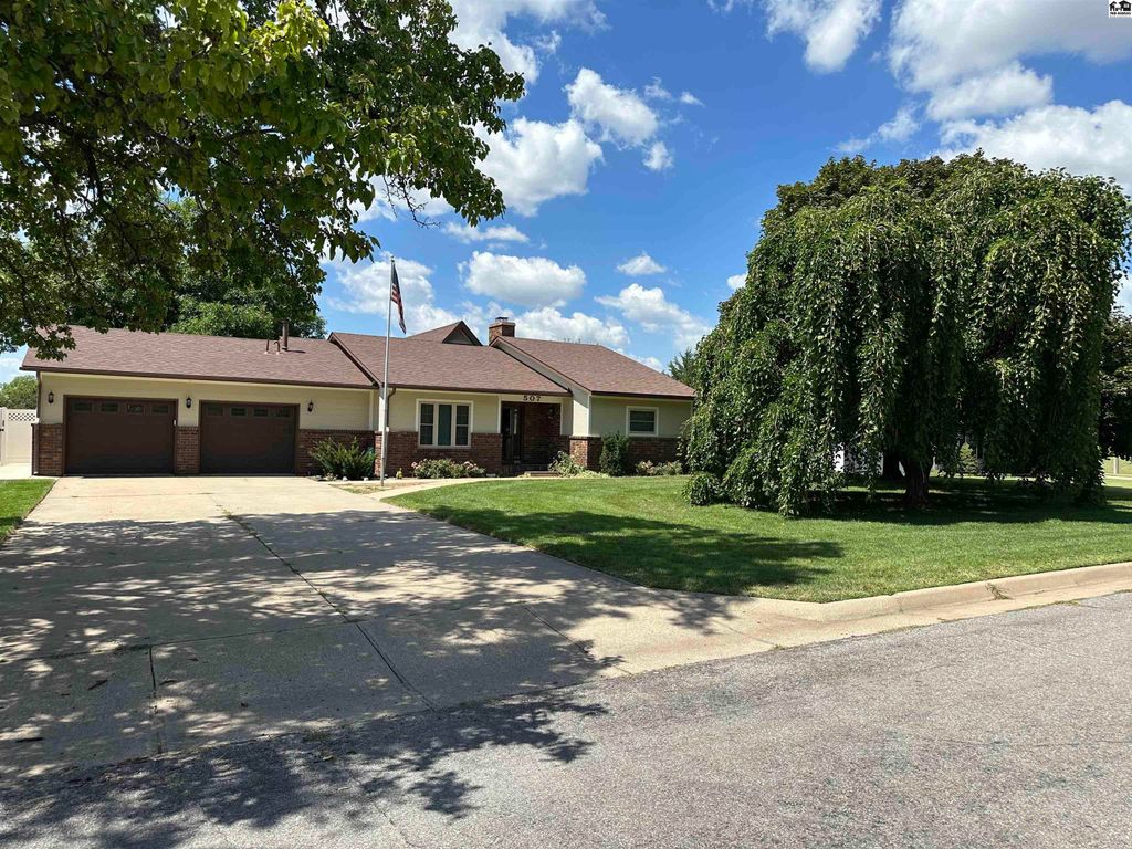 This charming 3-bedroom, 2.5-bath ranch-style home, built in 1983, is located on the west side of town in a quiet, well-kept neighborhood. The primary suite features a spacious bedroom, walk-in closet, and private bathroom with a shower. Two additional bedrooms and a full bathroom are located off the north hallway. The front entry opens into a formal living room with a cozy wood-burning fireplace, along with an additional sitting area at the front of the home. The kitchen is open to the dining area and living room, creating a welcoming flow for gatherings. A large addition provides another living area with a small balcony space that can serve as a home office, craft area, or reading nook. From this living area, you can also step out to the shaded patio and fenced-in backyard. The backyard is beautifully landscaped with flowers and ornamental grasses, kept green with the underground sprinkler system, and includes a nice storage shed. Inside, just off the kitchen, you’ll find the laundry room, half bathroom, and access to the attached 2-car garage. This home is move-in ready and has been updated throughout (see photos for details). Don’t miss your chance to make it yours—call today to schedule a showing!