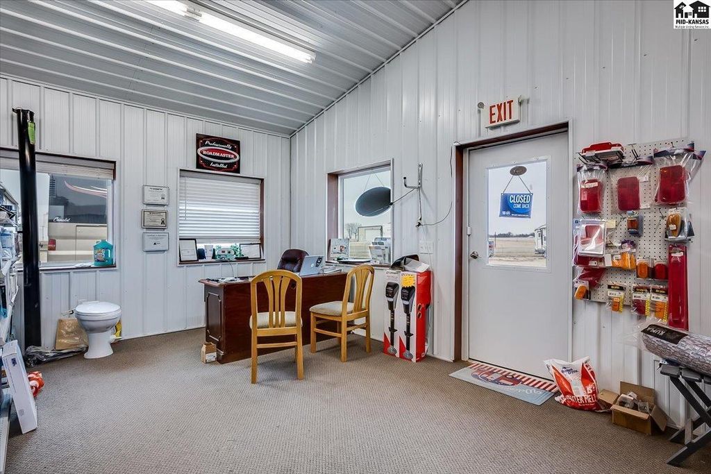 Prime commercial opportunity at 510 W Main St in Haven, KS with excellent visibility along K-96 Highway and an impressive daily traffic count of nearly 12,000 vehicles. Currently operating as an RV and camper service shop, this versatile property features a modern retail/showroom area along with a spacious workshop/service area, making it ideal for sales, service, retail, or a variety of commercial uses. The high-visibility location and steady traffic flow provide outstanding exposure for your business. Great opportunity to establish or expand your business in a highly accessible Haven location. OH doors 14Hx16W and 14Hx14W. City water and city sewer. Shop space is heated with gas heater. Ramsey propane.