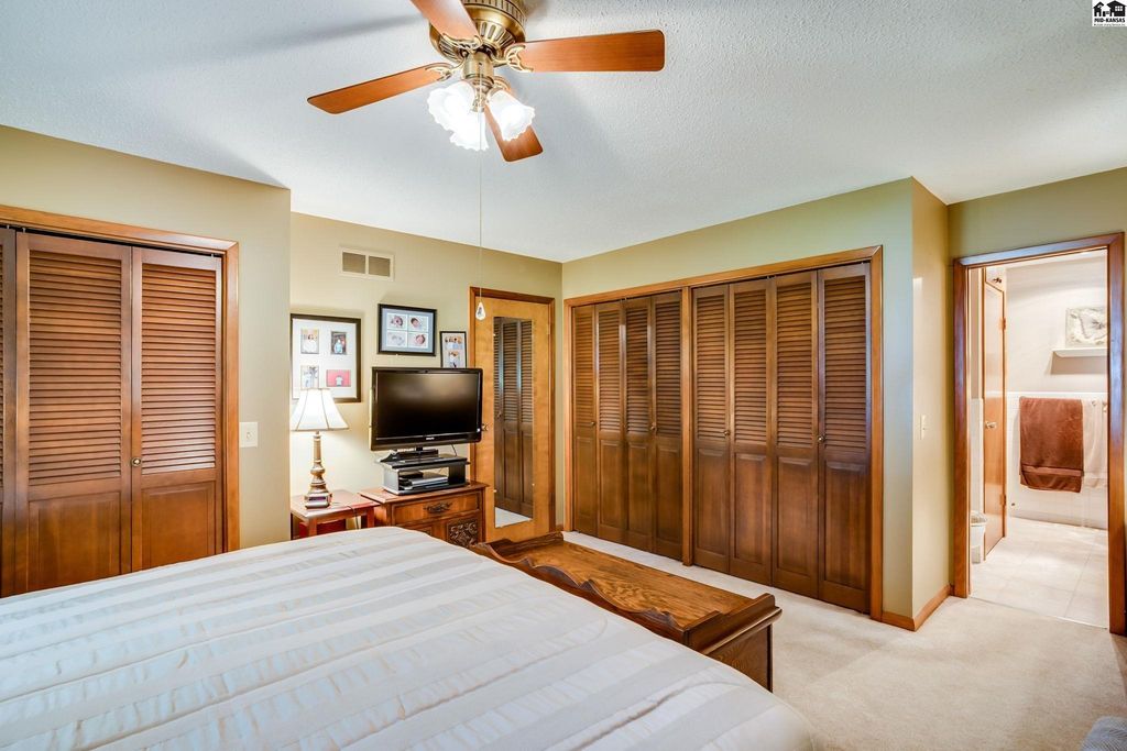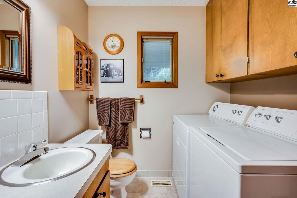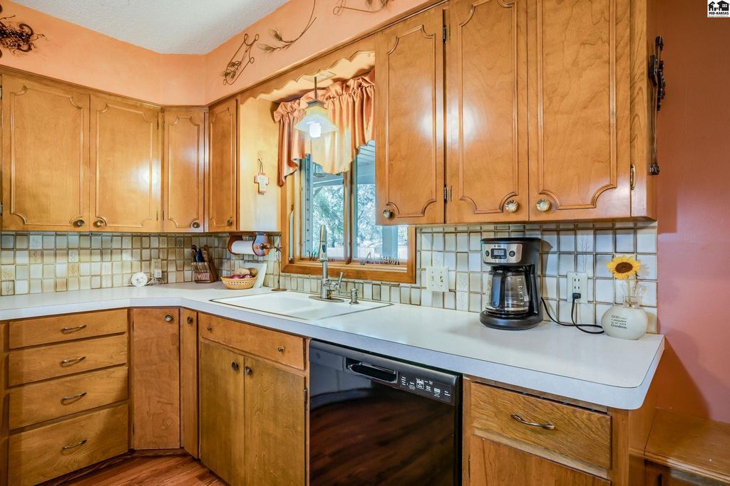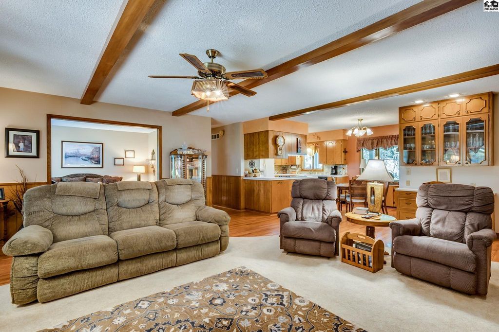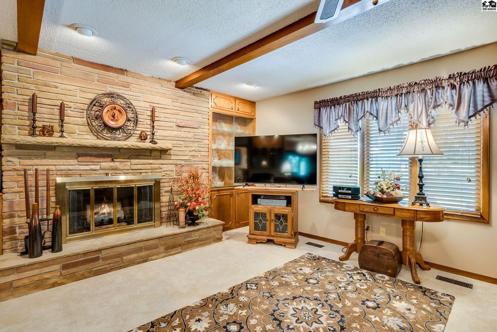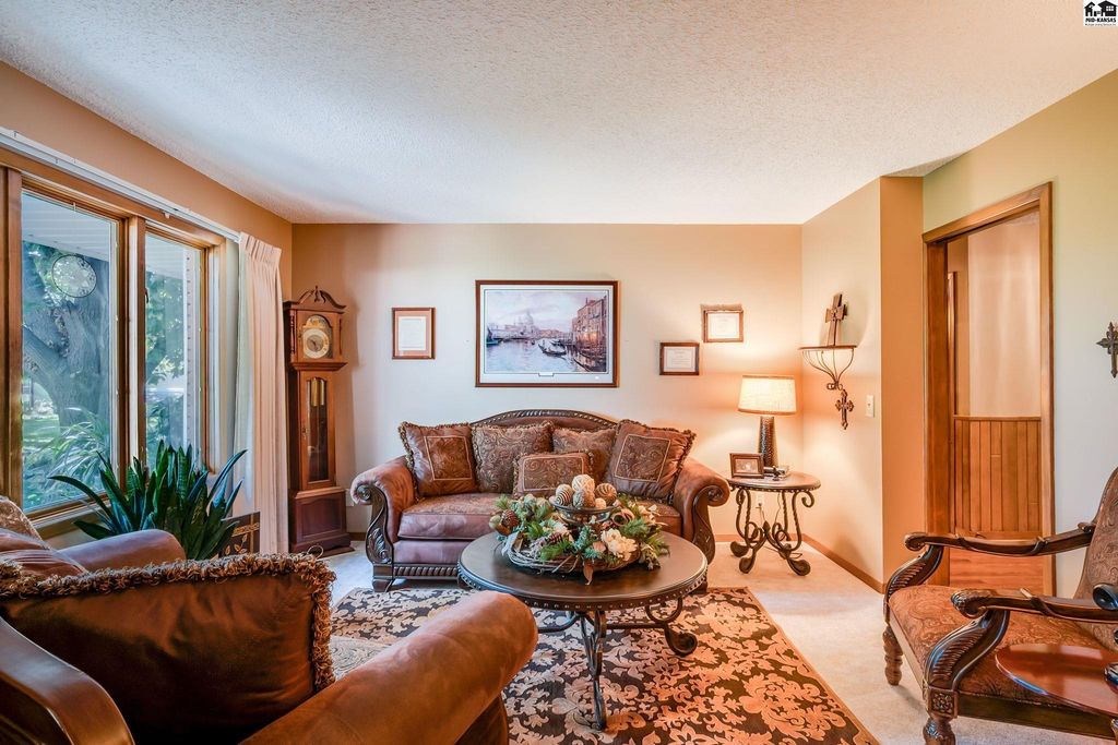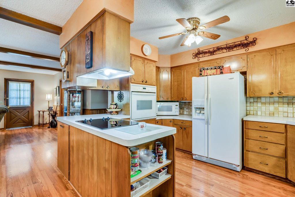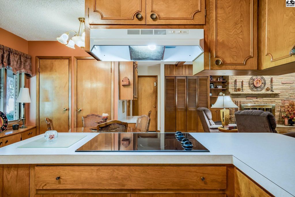 2.03 acres in a cozy neighborhood just a few minutes North of Hutchinson. Custom built brick home, 40′ x 60′ metal out building that connects to a 30′ x 16′ detached garage, a large double carport, and numerous other building used for storage. The setting will win you over! Take the circle drive right up to the front door of this beautiful home (featured in the 1966 Parade of Homes). 3 bedrooms, 2.5 baths, and plenty of space to spread out in this open floor plan design. Many custom features through the home. The family room with wood burning fireplace (gas starter) has built in bookcases on either side.