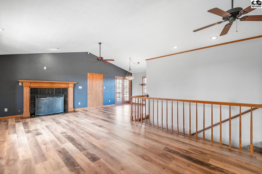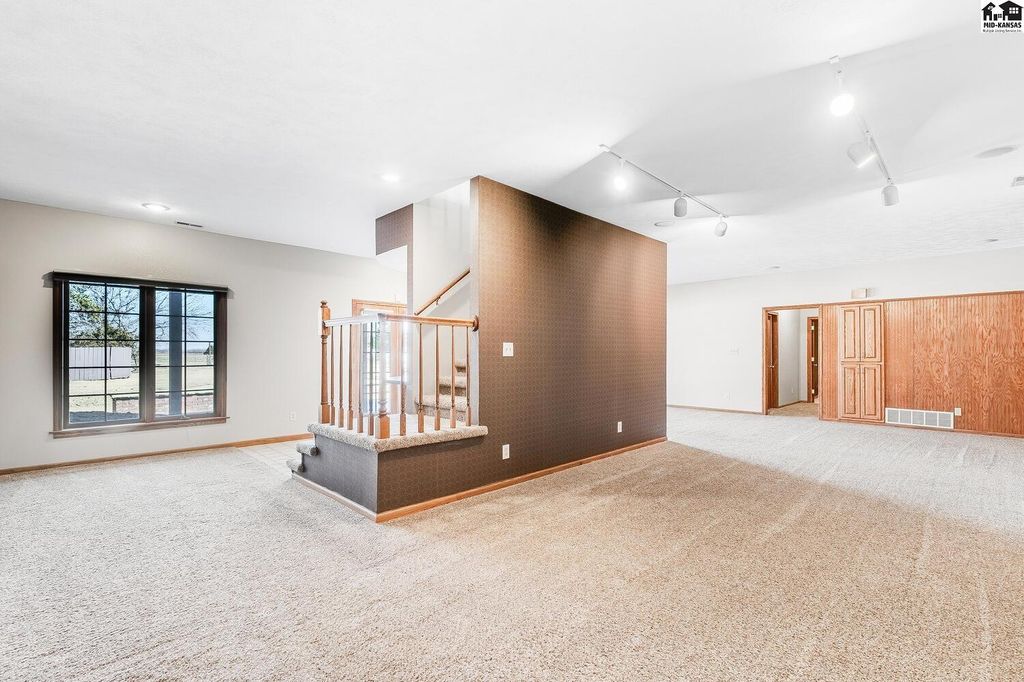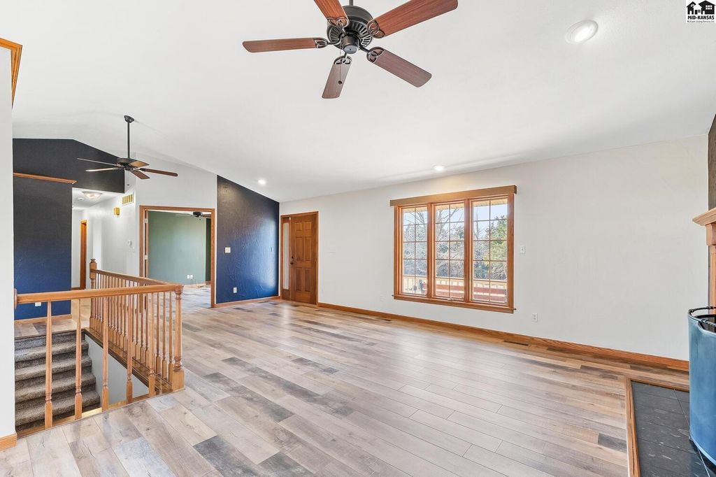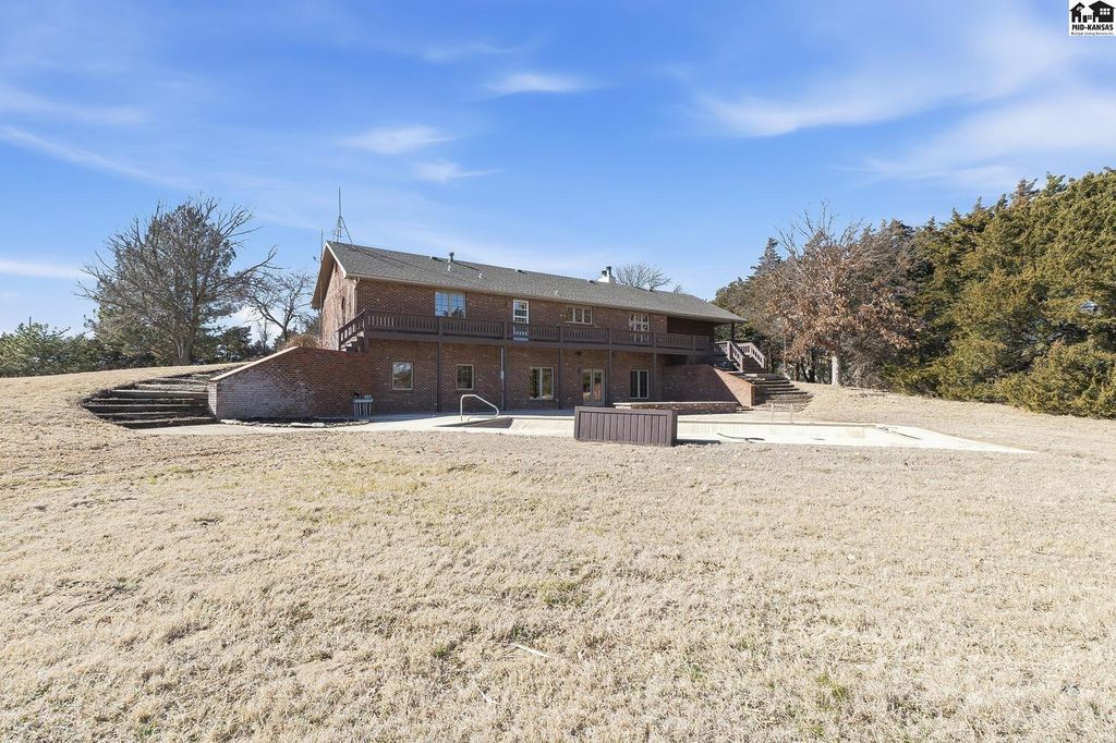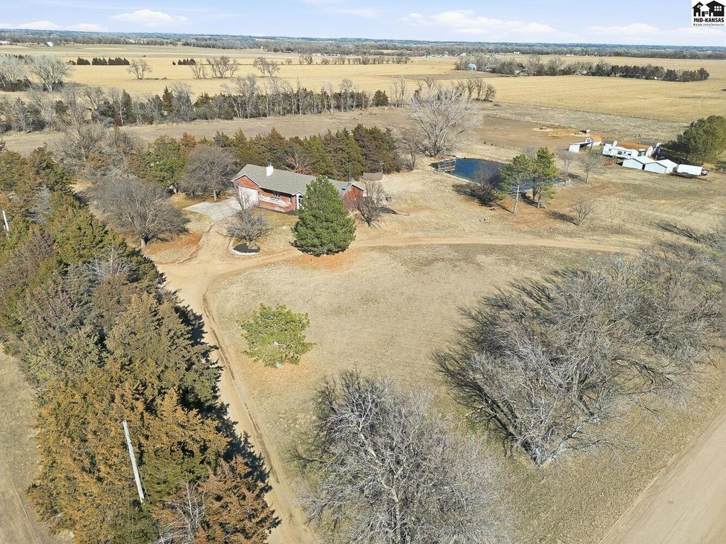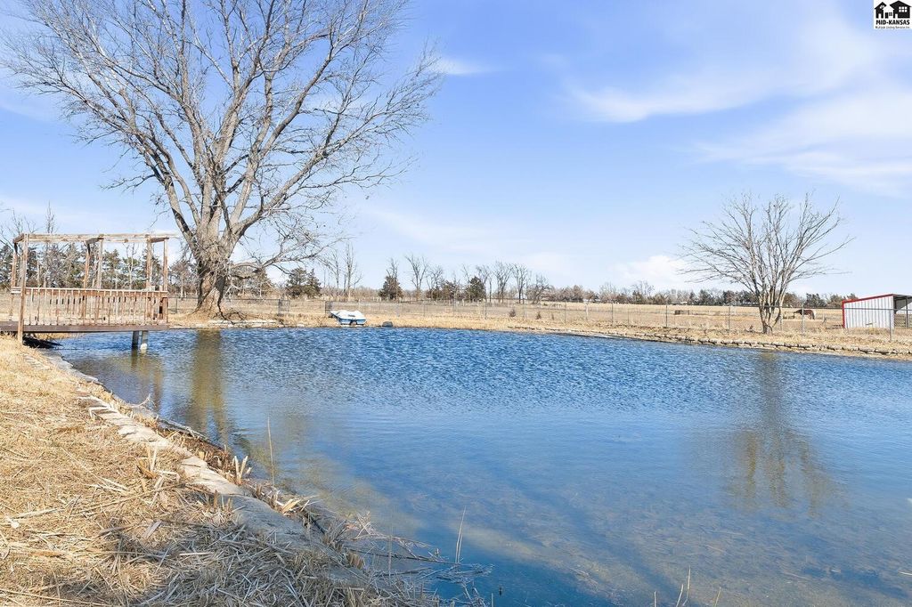 Welcome to peaceful country living on 13.6 acres! This spacious, ranch style home offers the perfect blend of comfort, functionality and wide open, Kansas views. With 4 beds, 3.5 baths, this home features an open floor plan on both the main level and in the fully finished, walk-out basement, ideal for every day living and entertaining. The main floor showcases new flooring in the living, kitchen and dining area along with fresh paint throughout the entire home giving a bright, updated feel. Downstairs, the walk out basement provides additional open living space and easy access to the outdoors. Stepping outside, enjoy everything this property has to offer. A 30X50 shop with a lean-to perfect for equipment, hobbies or extra storage. Plus acreage well suited for a hobby farm. Lastly, a charming pond to add to the peaceful setting making it easy to unwind!