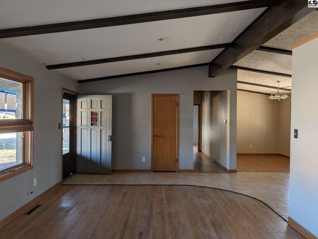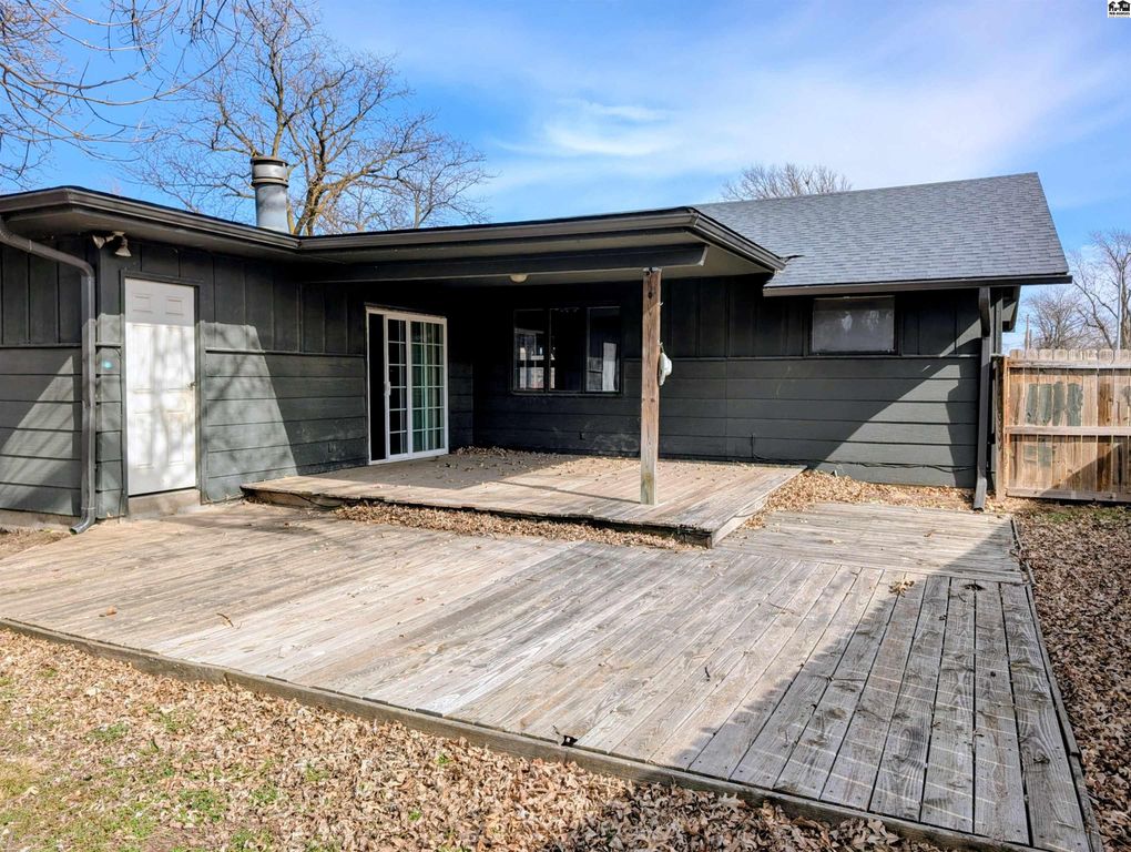 Fantastic opportunity to make some quick equity! Check out this 3 bedroom, 2 bath ranch style home in the heart of McPherson. Inside you’ll find a spacious living room with vaulted ceilings and large windows, a dining room that overlooks the backyard, kitchen with appliances and breakfast bar, and a cozy den with sliding door to the large deck. This home offers a split floor plan with 2 bedrooms and 1 bath on the south side and a primary bedroom and bathroom on the north side. The spacious backyard is privacy fenced and features a unique storage room on the back of the home perfect for gardening supplies. The single car attached garage has storage closets and the crawlspace access. Parking will not be an issue with a massive 3-car wide driveway. This home will not last long, make your appointment today!