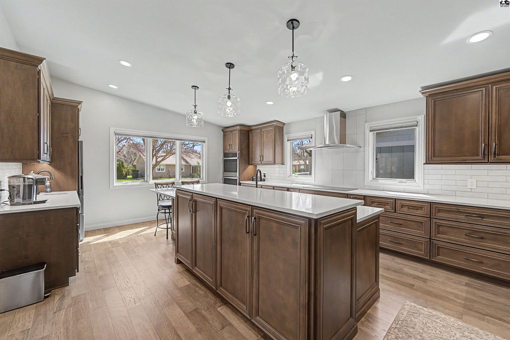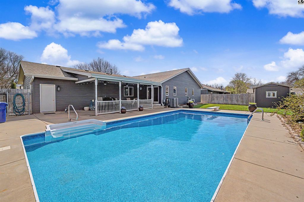 **Sold before input** Beautiful ranch home on the north edge of Lindsborg with a 16×44 addition by Kaufman Built Custom Homes – WOW is the expression that fits! Vaulted ceiling in the living room with fireplace and generous space for a dining table. The kitchen is definitely the gathering place with a large island, double ovens, beverage refrigerator, coffee bar, and custom Dohrman cabinetry. The master suite is simply amazing – walk-in closet with cabinets, shelves, and organizers. Master bath is just stunning – separate vanities, walk-in shower, and soaker tub. The master suite leads out to the in-ground salt water pool with covered patio space. Beautiful yard with well and sprinkler system. 2nd bedroom, another full bath and main floor laundry round out the main floor. Full, finished basement with a family room, 2 more bedrooms, full bath, office space and plenty of storage. So much attention to detail on this home – it is special!