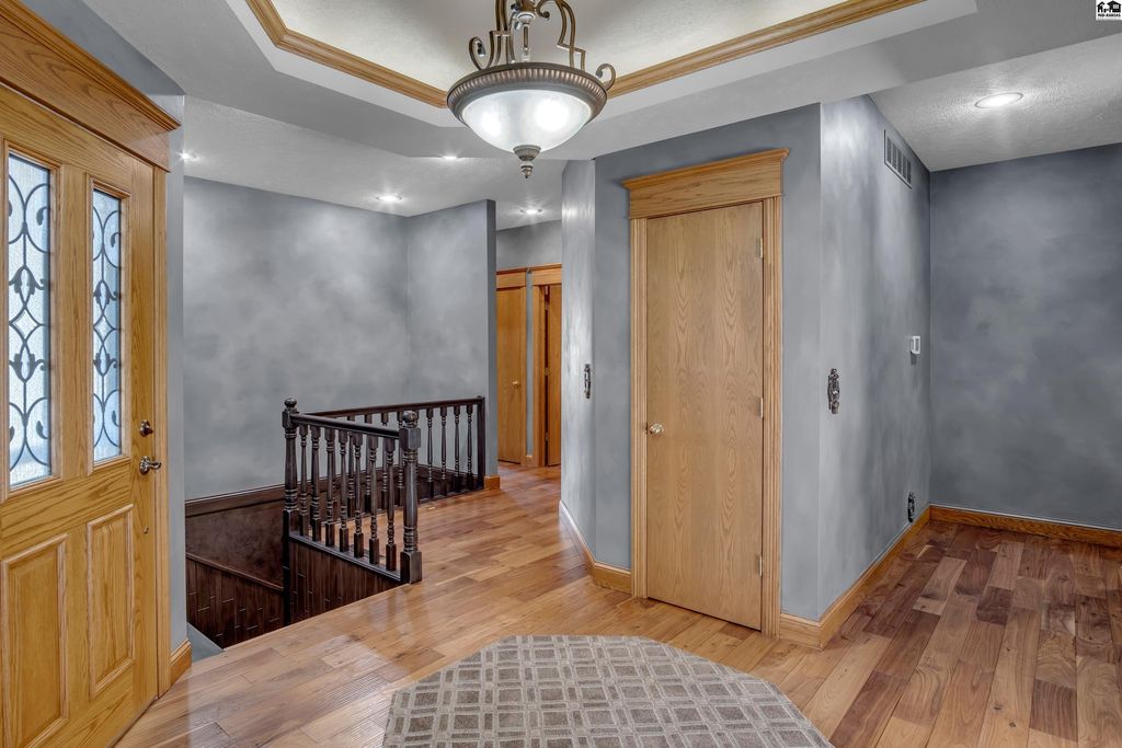 Step into this thoughtfully crafted home where quality construction meets comfortable living. This impressive home offers three bedrooms and 2 1/2 baths on the main floor and 1 bedroom in the basement that does have an egress but was set up as a hobby room with lots of cabinets. Additional half bath in the basement also. The main floor spans 2028 square feet of well-designed living space, featuring stunning Amish hand scaped wood floors that showcase authentic craftsmanship and natural beauty throughout. The heart of this home boasts elegant granite countertops that combine durability with timeless appeal. The full basement has over 1200 square feet of finished area creating endless possibilities for recreation, home offices or additional entertaining areas. For work enthusiasts, the garage features incredible metal cabinetry, workbench and three car capability. Outside has newer siding and roof centered around a beautiful yard with thriving flower beds all equipped with irrigation. Large patio area in the back for the outdoor cook and entertaining. Call today for your personal tour.