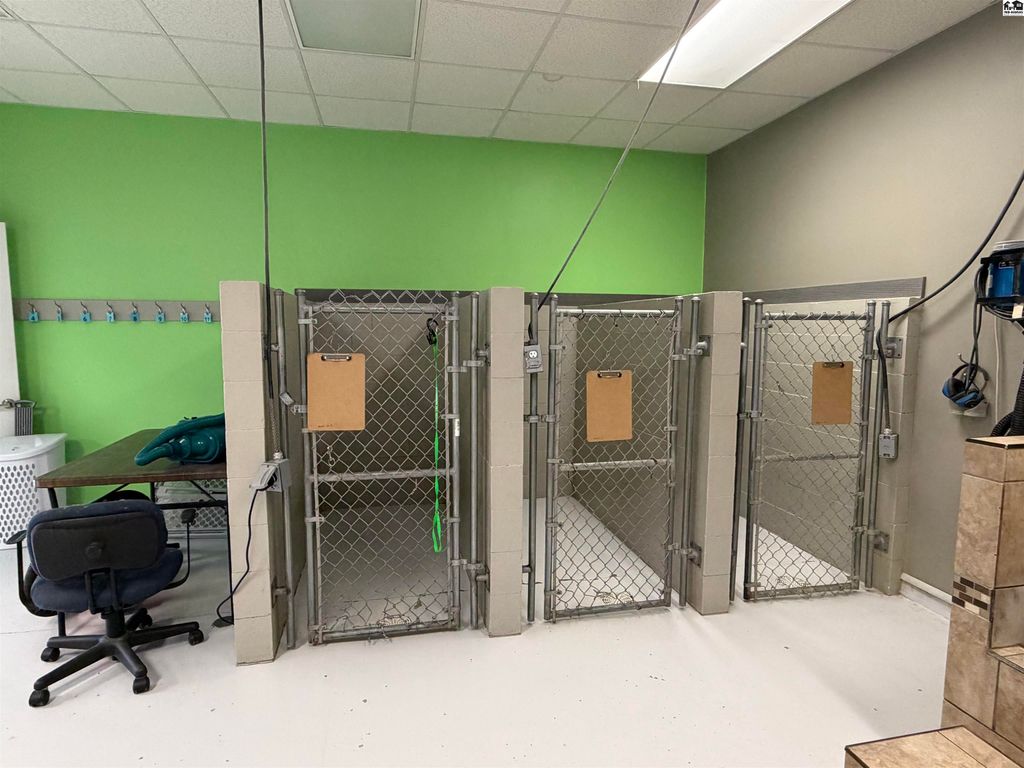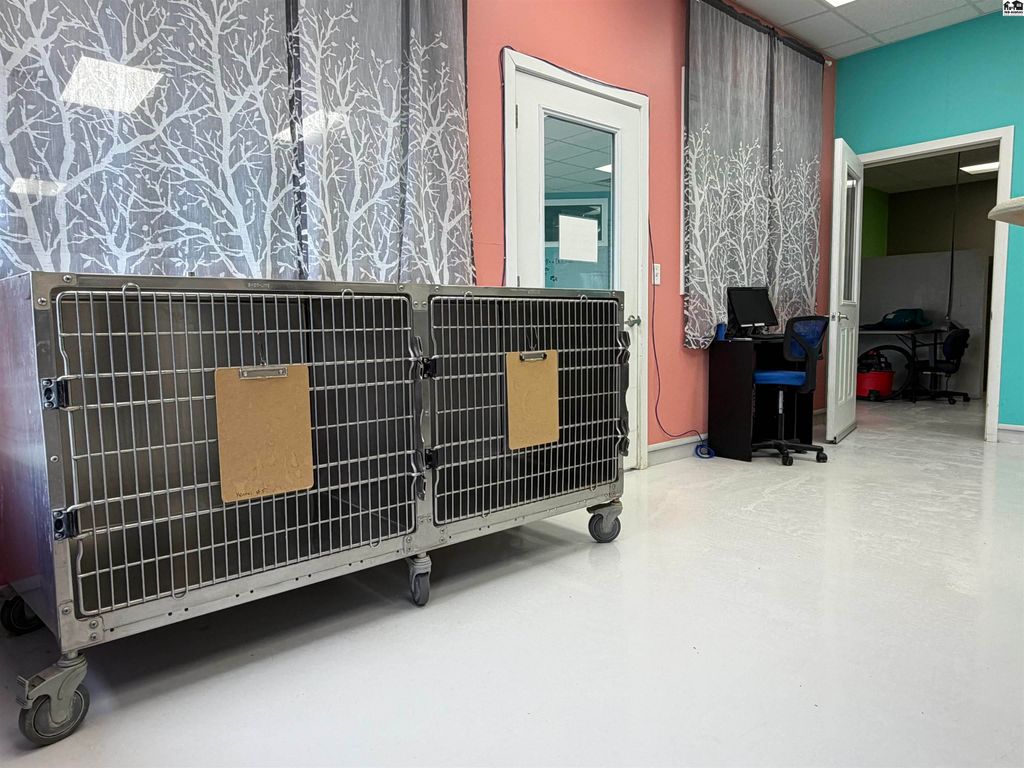 Welcome to your next business adventure! This property is the perfect set up for a well run dog boarding, grooming, and dog daycare facility. There is potential to also have a small retail space for all your man’s best friend’s supplies. The real estate was developed into this well oiled machine in 2017. There are three zoned HVAC Systems and over 50 drains throughout the building. Starting at the front, you have a spacious retail counter plus a private office. The large foyer gives you plenty of room for incoming and outgoing clients. This space would also serve as any potential retail room. The grooming and spa area comes equipped with two grooming tables, two large cages, and 16 smaller cages. The Daycare features an indoor / outdoor play area, the outdoor play area has artificial turf and a play set, 8ft fencing, and inside there are staging kennels in case anyone needs a rest. There is an exam room with a table and scale. Then the boarding room is equipped with sound boards and plumbing for easy clean outs. There are 24 indoor / outdoor kennels, 14 indoor only kennels, and 5 luxury suites. Each indoor / outdoor kennel has a drain, easy to open door, a 4×8 concrete pad, and access to the large play yard. The property is 1.2 acres and building is 6,000 square feet. Each kennel is cinderblock and built to last. The exterior is well lit and secure. Many more features, and so much potential. Call today to view this property!
